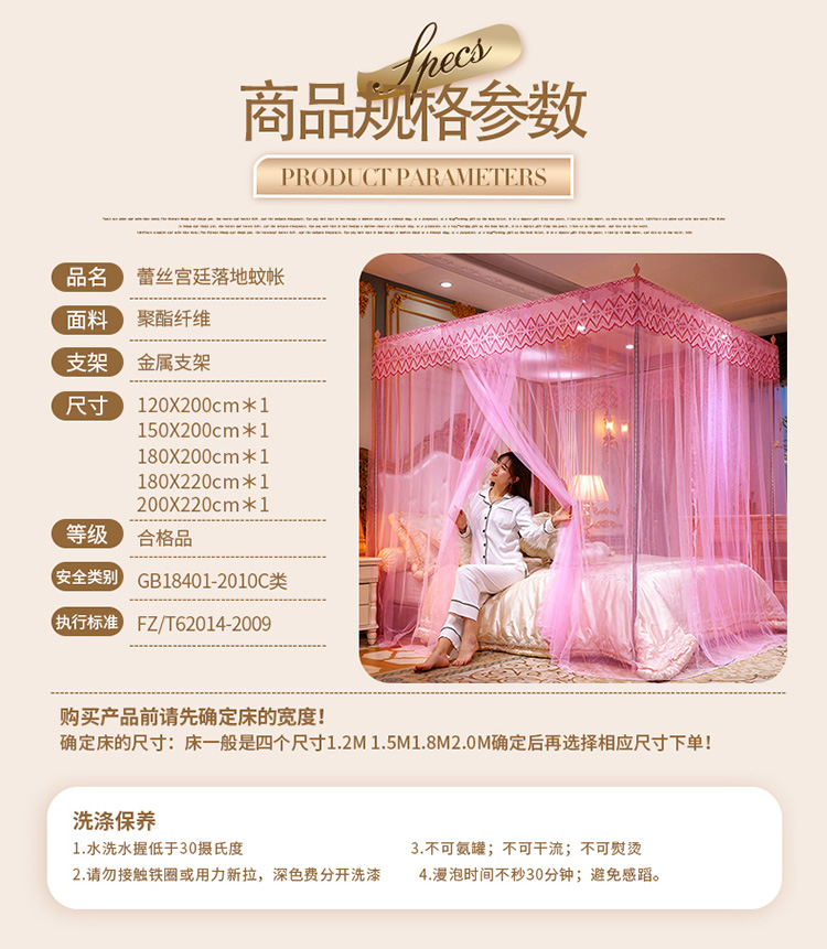 商品名称:(总)迷仙巢家纺 2021新款蕾丝宫廷落地蚊帐-格调人生