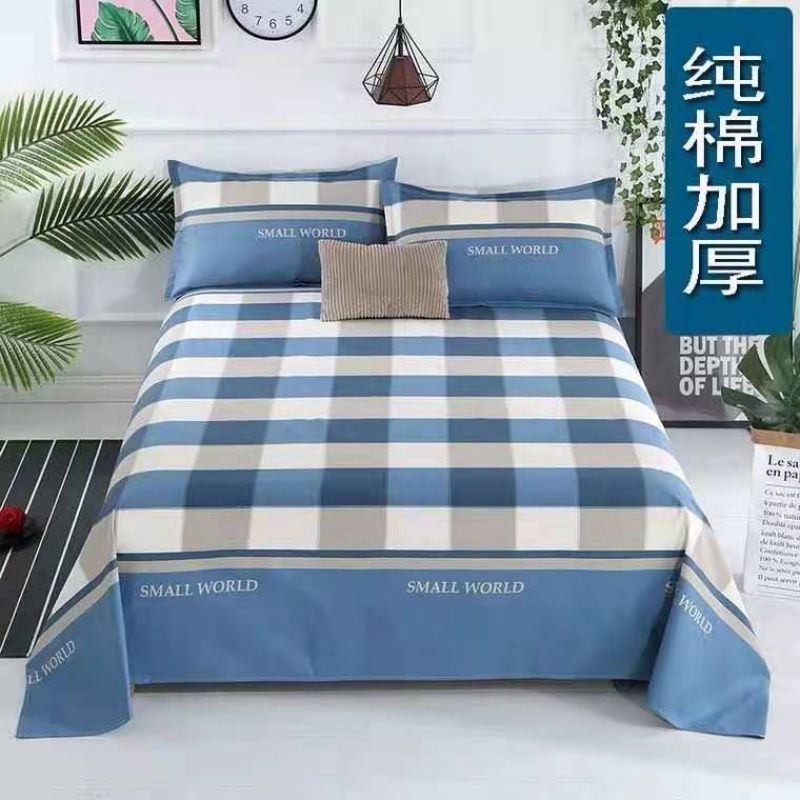 鹏程 2022新款纯棉老粗布三件套凉席 蓝大格