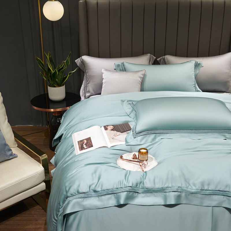 时亿家居 2021新款80天丝瑞丽镂空四件套 瑞丽北岛绿