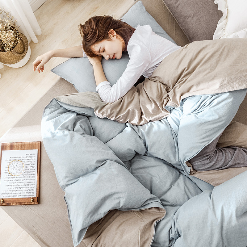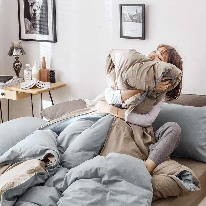 当前位置: 91家纺网 > 商品网购 > 床品套件 > 四件套 > 水洗棉四件套 > 安莱生活 2021新款全棉水洗棉双拼四件套 浅兰+卡其