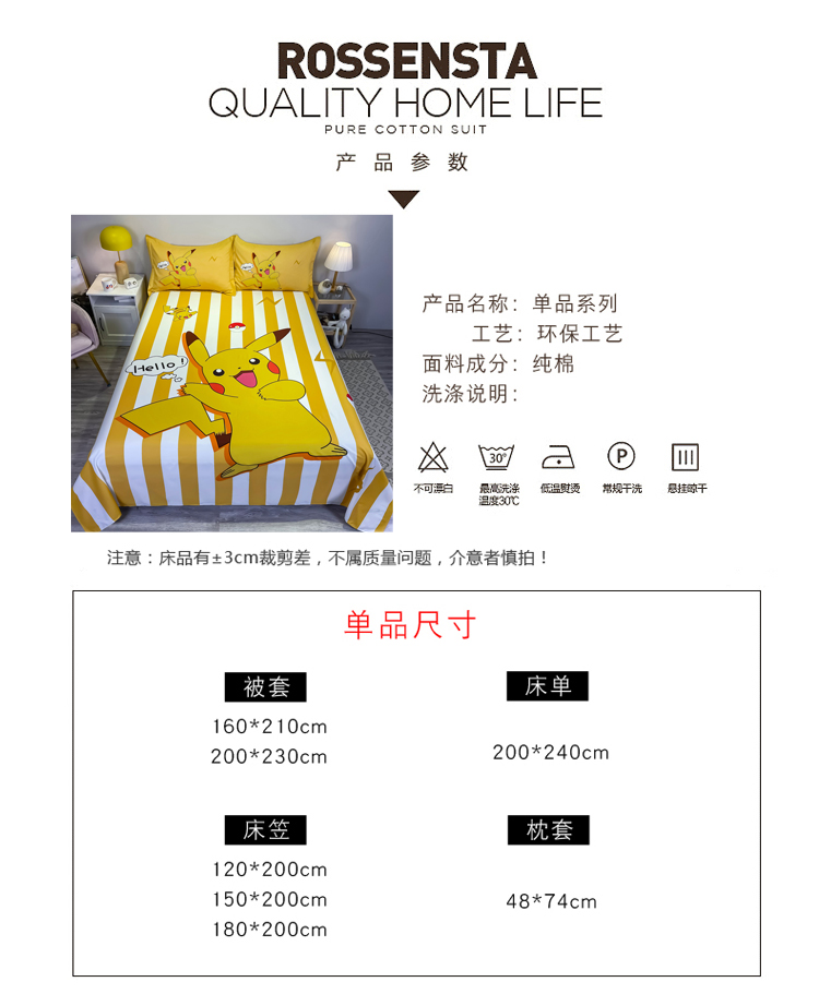 商品名称:金爱家 2021新款全棉大版单品床笠 闪电