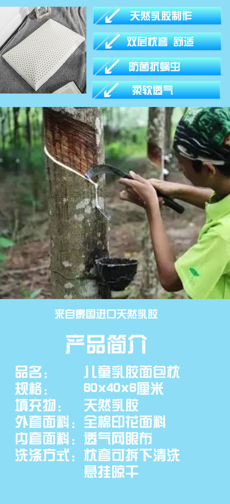 商品名称:桐格乳胶新款儿童乳胶枕成人低枕60*40/7护颈枕 彩虹象