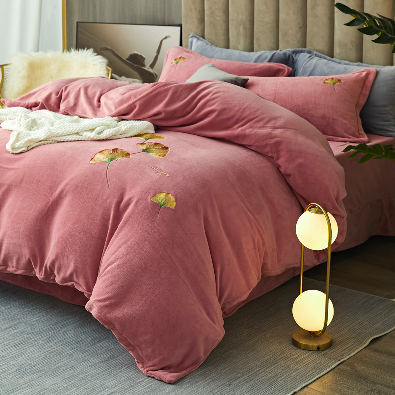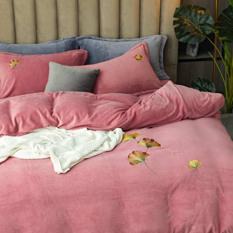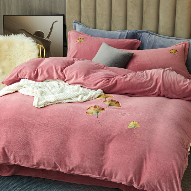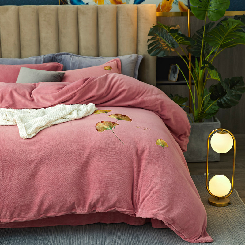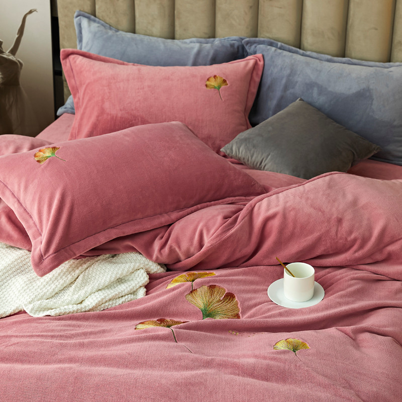 锦罗绣 2021新款牛奶绒绣花四件套 枫叶粉