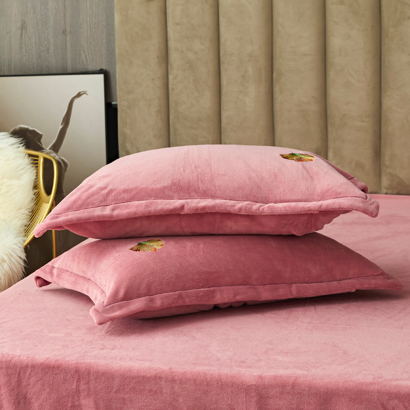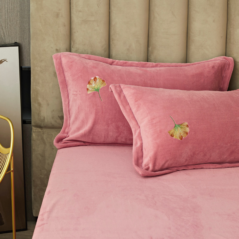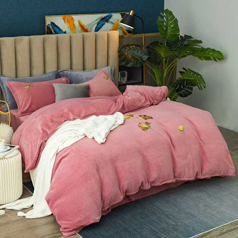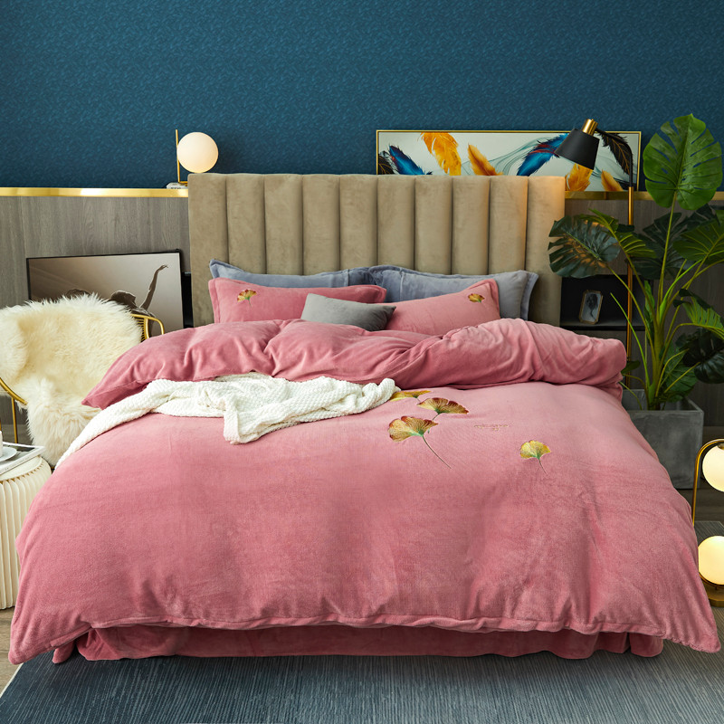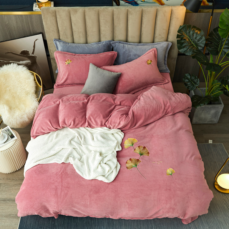 锦罗绣 2021新款牛奶绒绣花四件套 枫叶粉