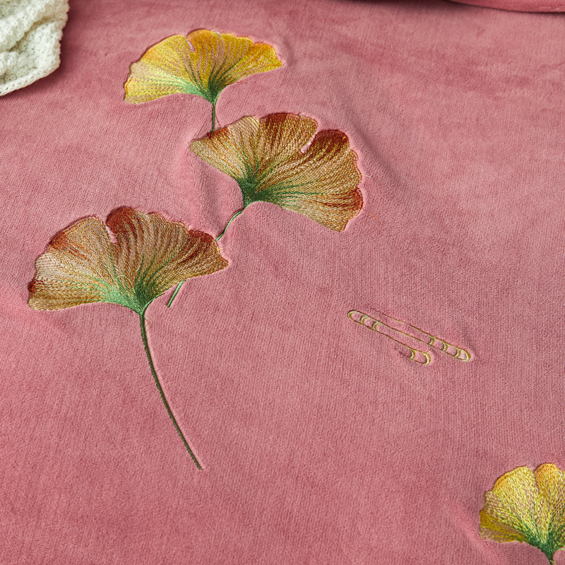 商品名称:锦罗绣 2021新款牛奶绒绣花四件套 枫叶粉