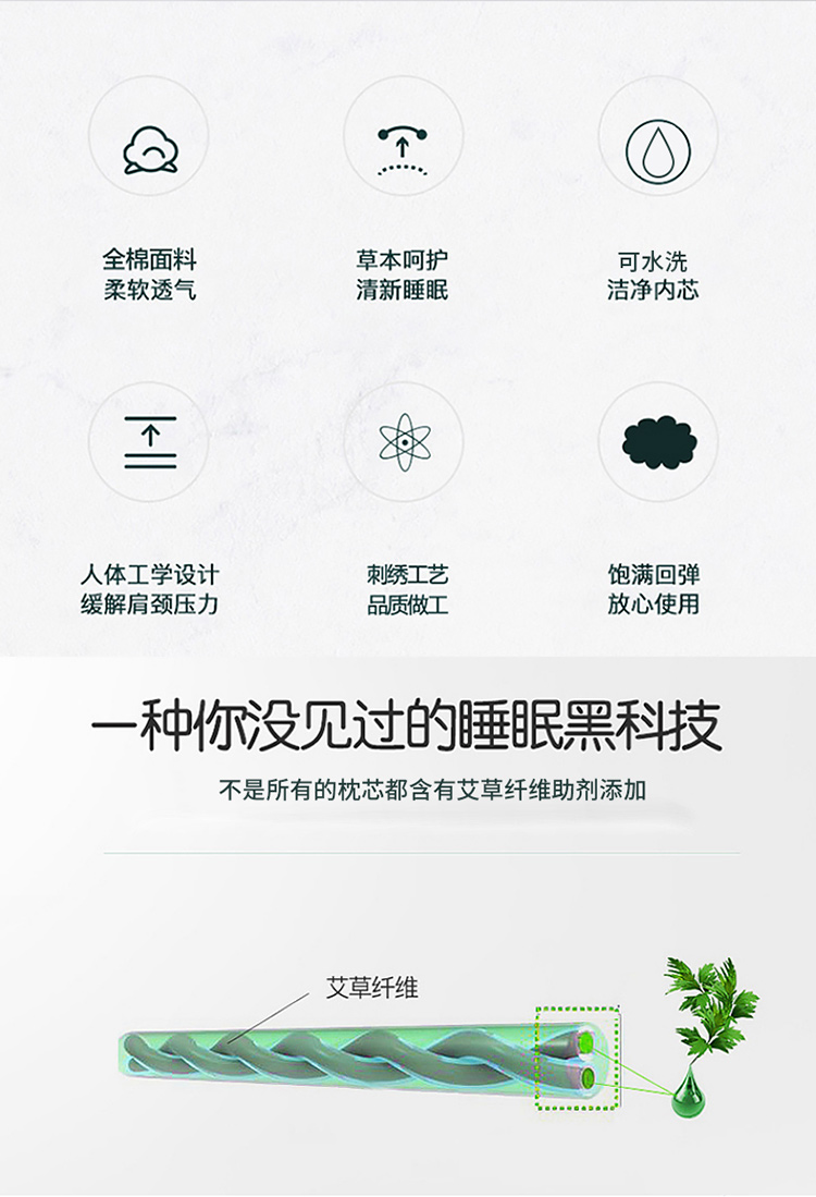 (总)皇冠之家 新款绗绣艾草枕芯48*74一只皇冠羽丝枕