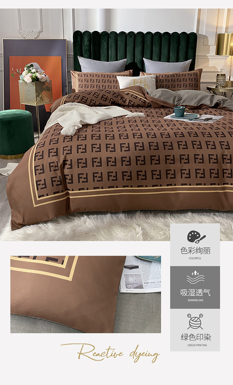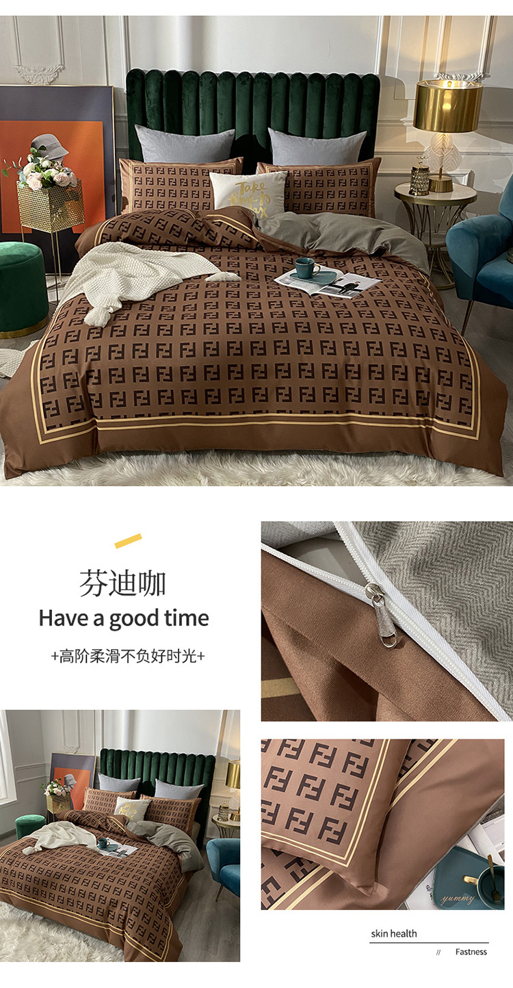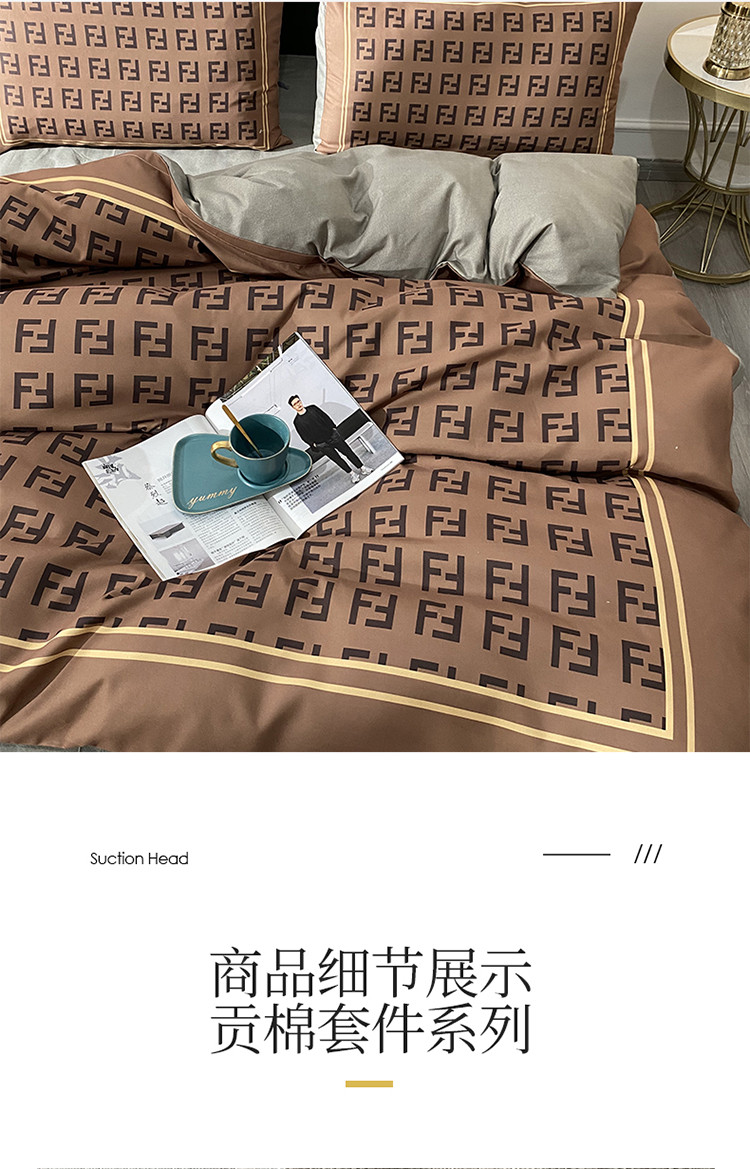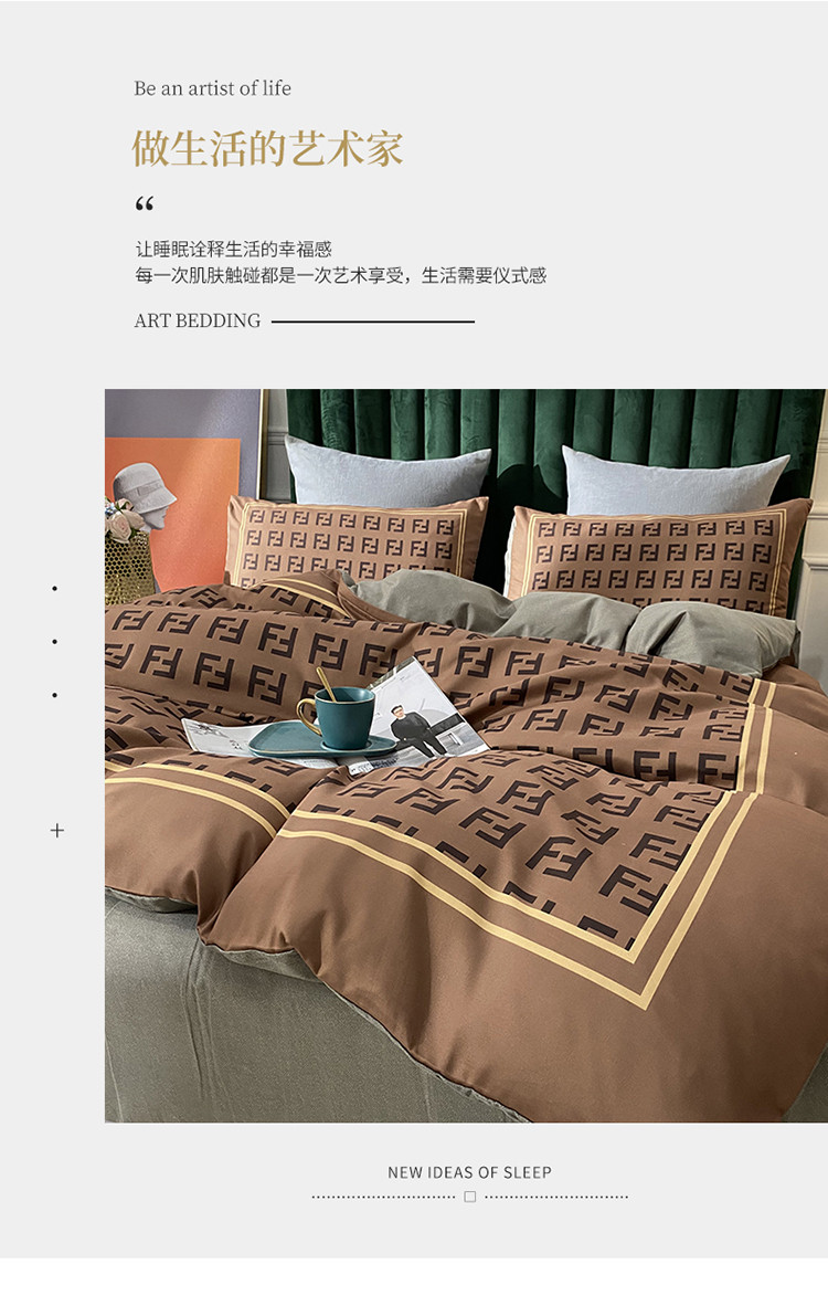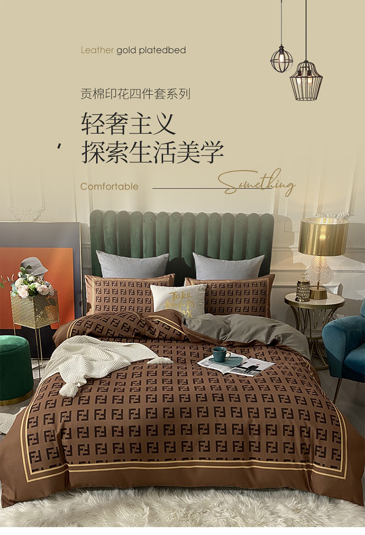爱一个家 2023新款贡棉数码印花大版花四件套 芬迪咖