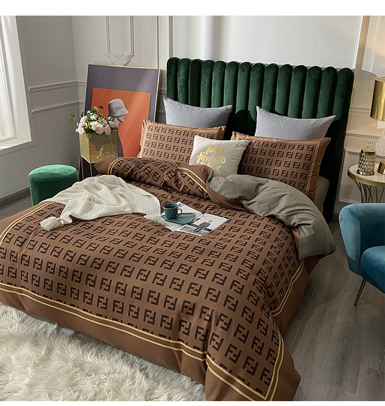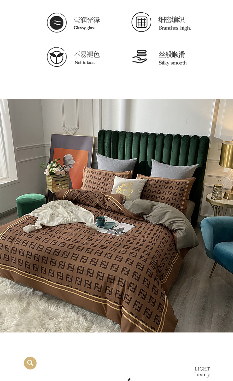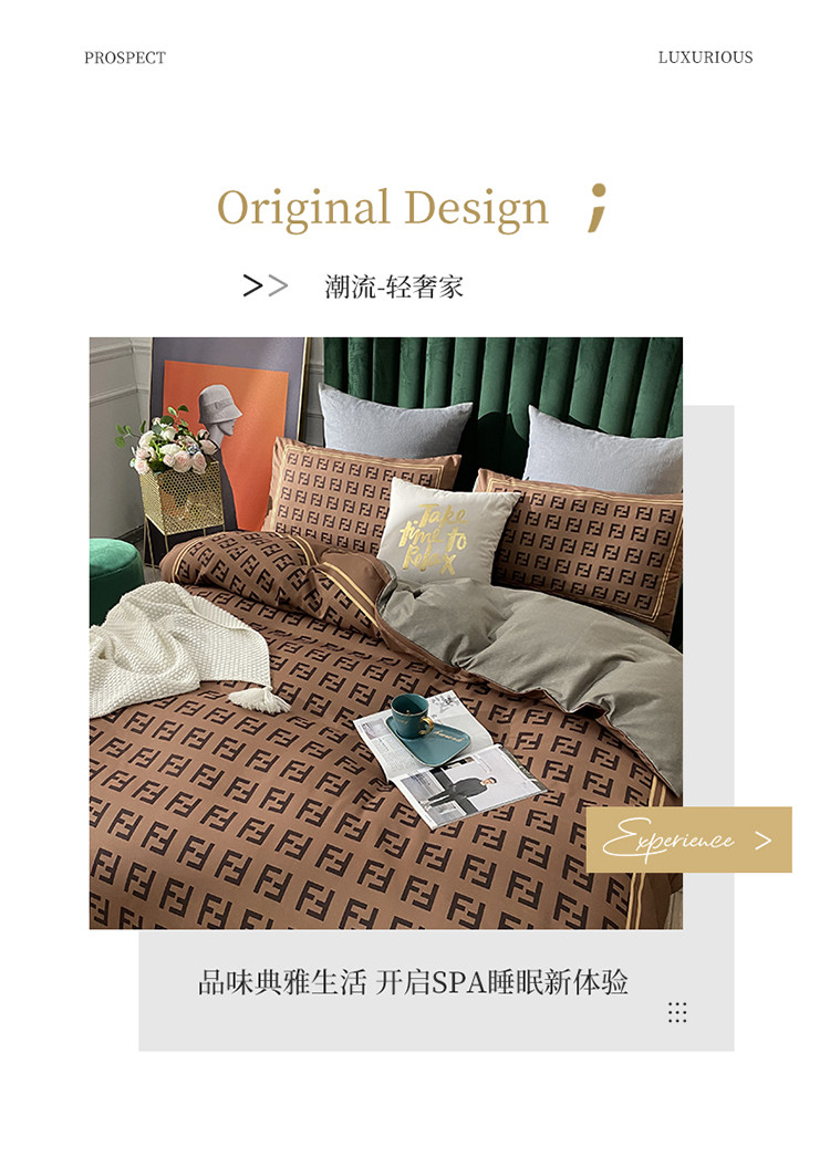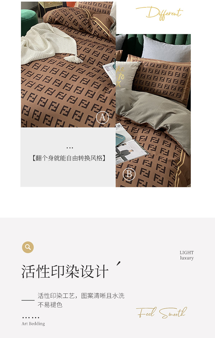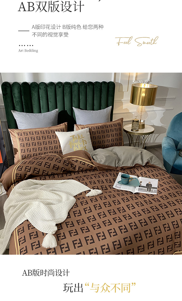 爱一个家 2023新款贡棉数码印花大版花四件套 芬迪咖