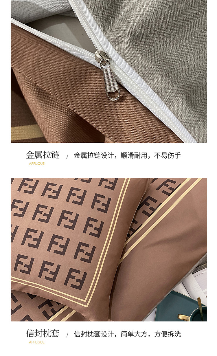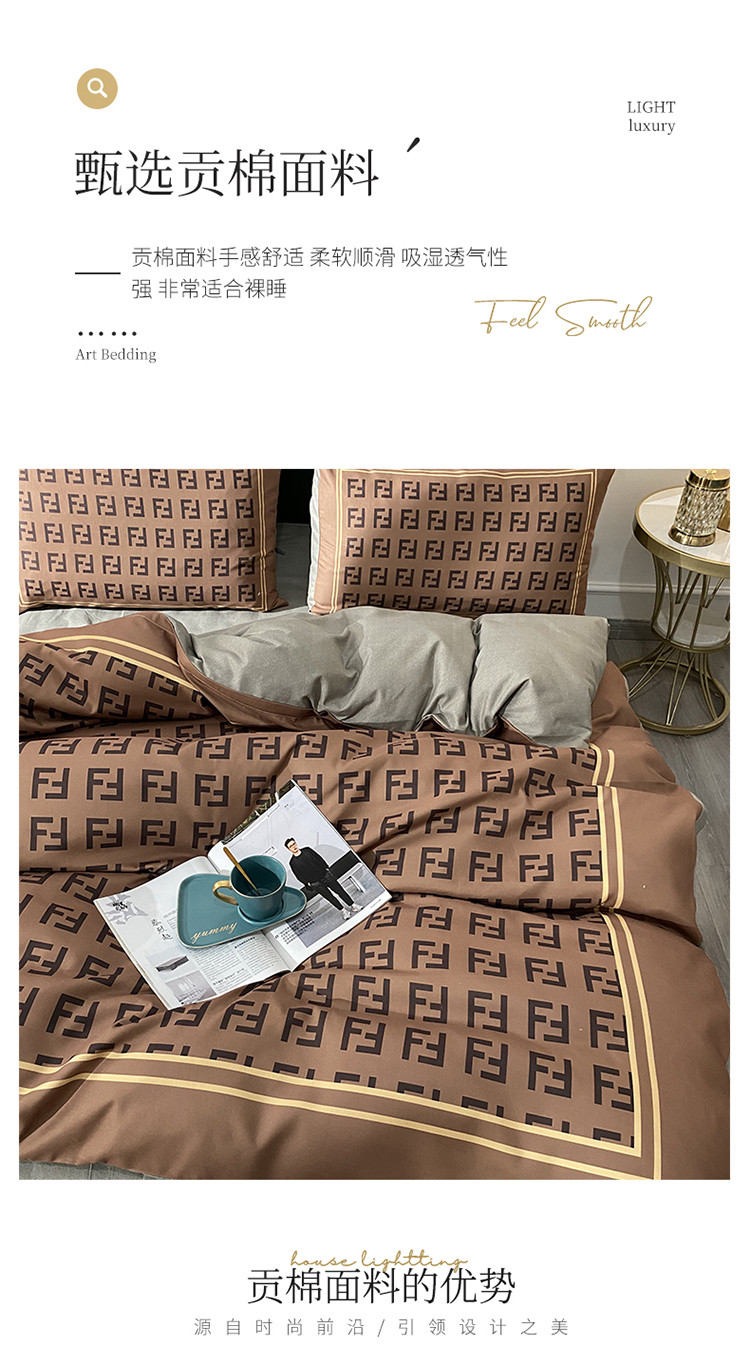 商品名称:爱一个家 2023新款贡棉数码印花大版花四件套 芬迪咖