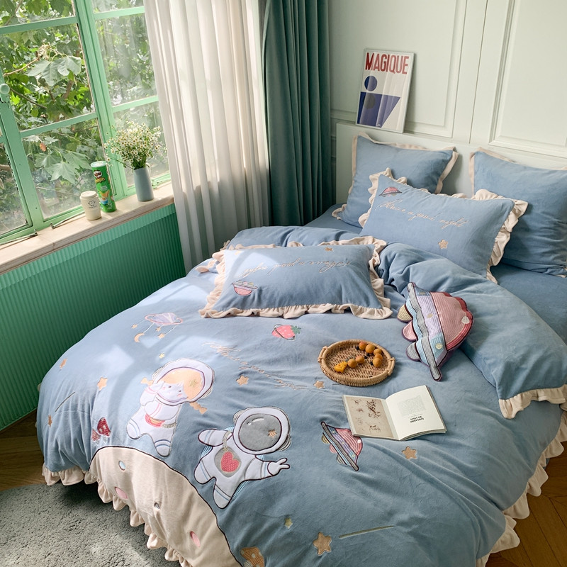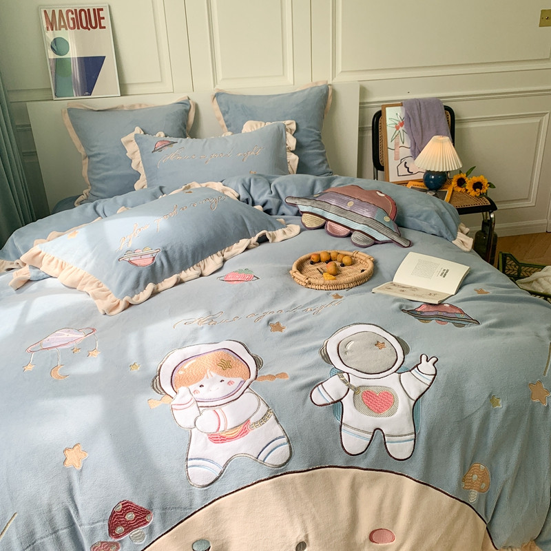 商品名称:柚子YOUTH 2021新款牛奶绒工艺款四件套-实拍 星球漫步蓝