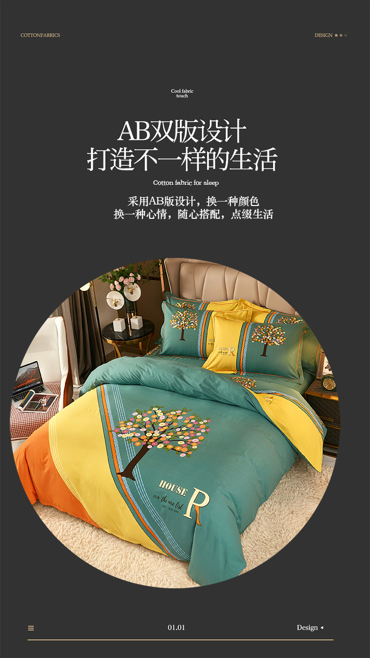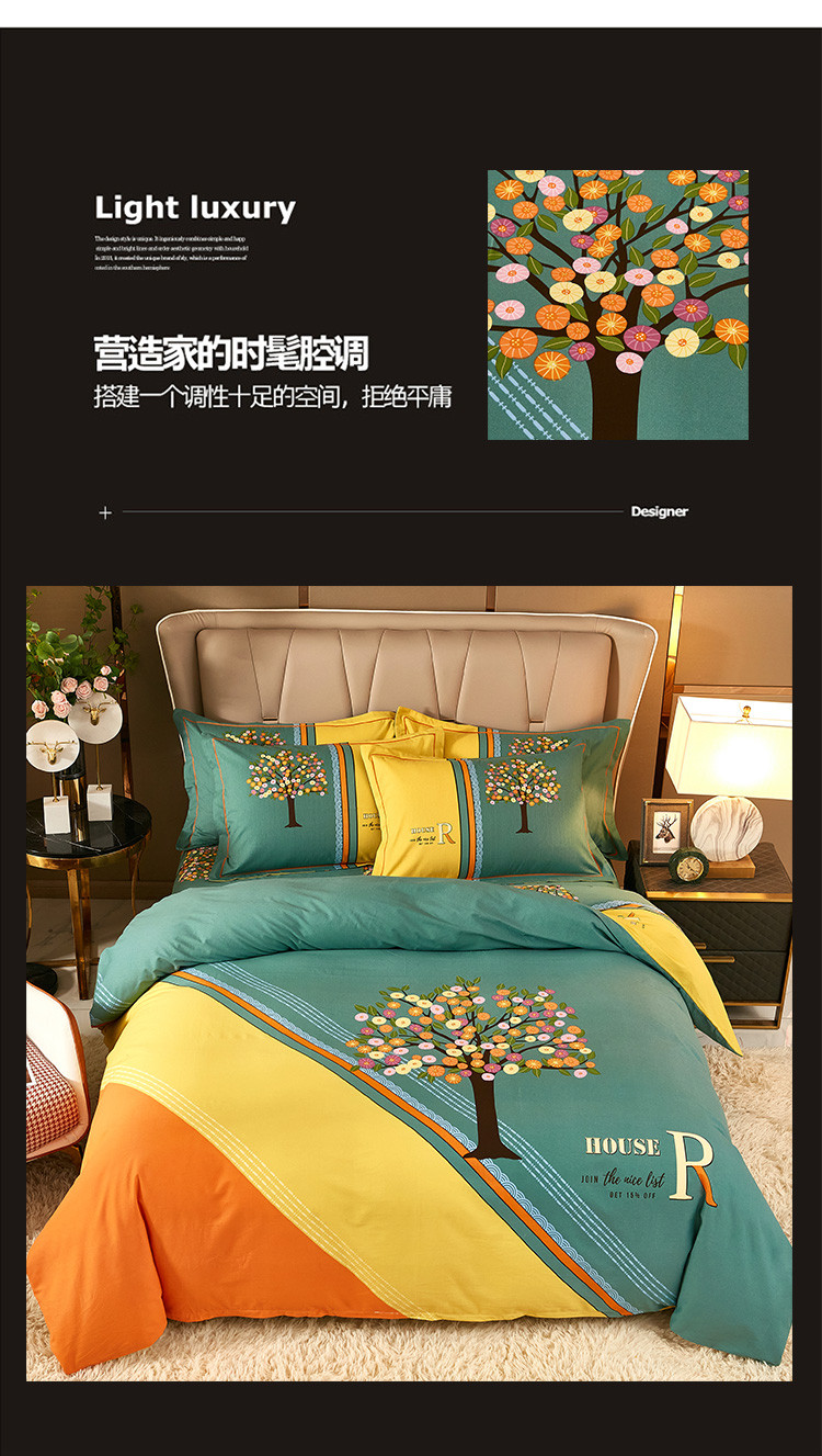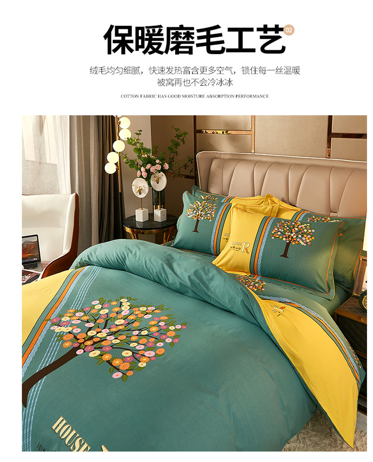 (总)雲归梦 2021新款全棉生态磨毛刺绣四件套,慕思-橙色,慕思-粉紫,慕思-灰,慕思-米黄,慕思-青绿,慕思-天蓝