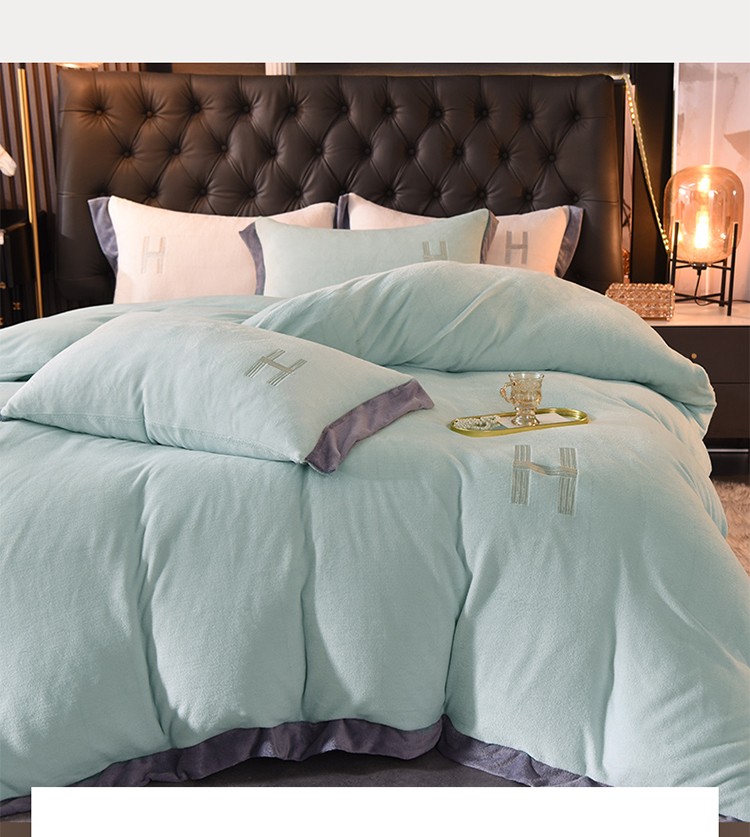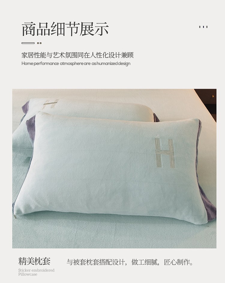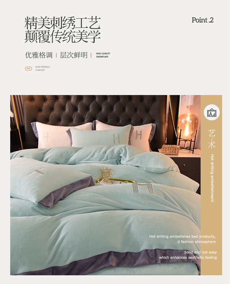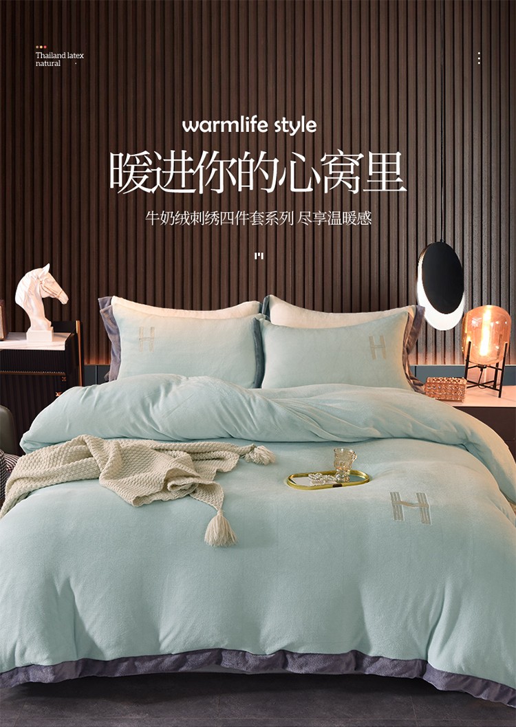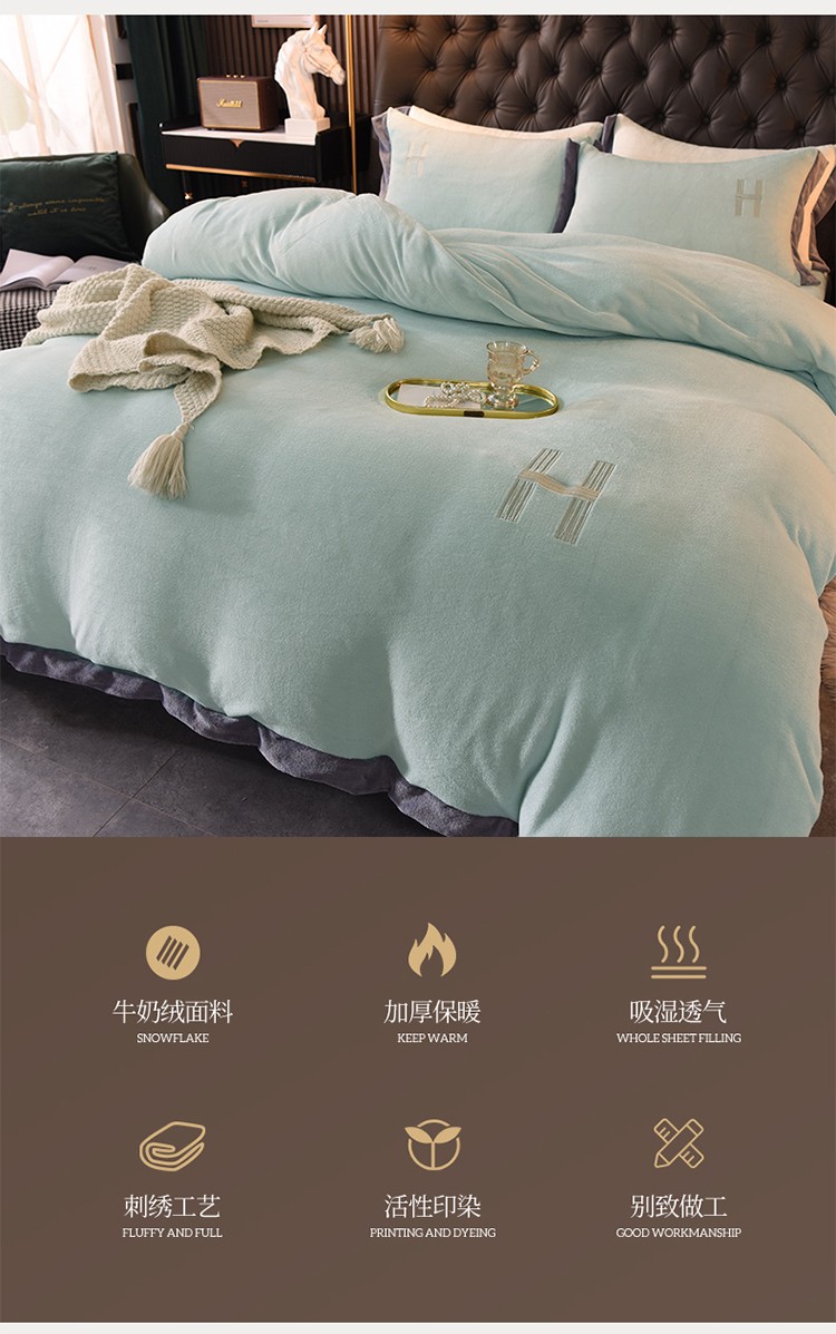 商品名称:艾米家居 2021新款牛奶绒刺绣H款四件套 豆绿
