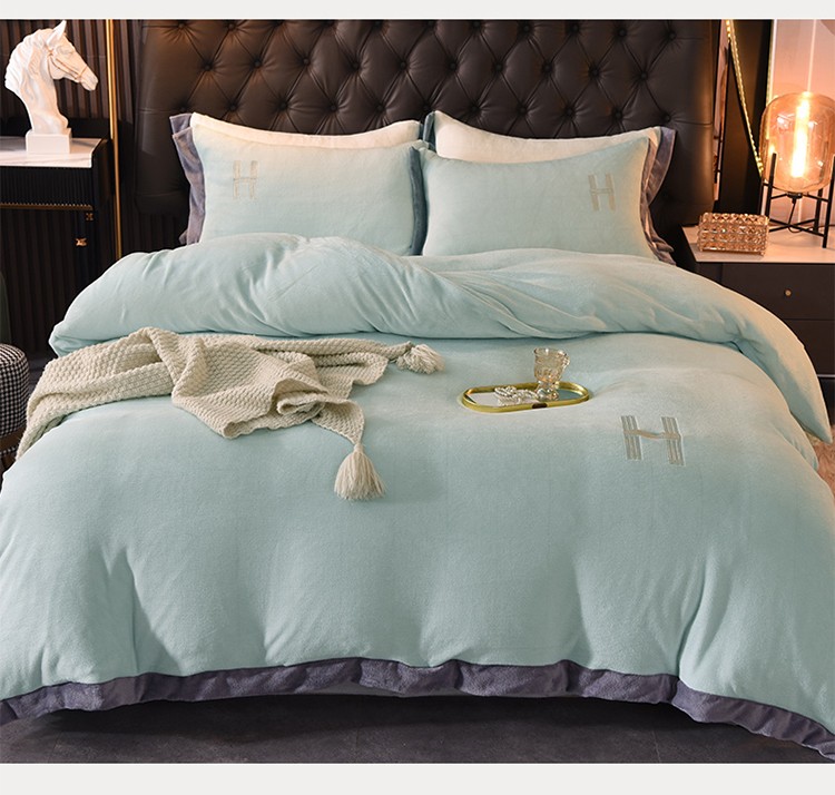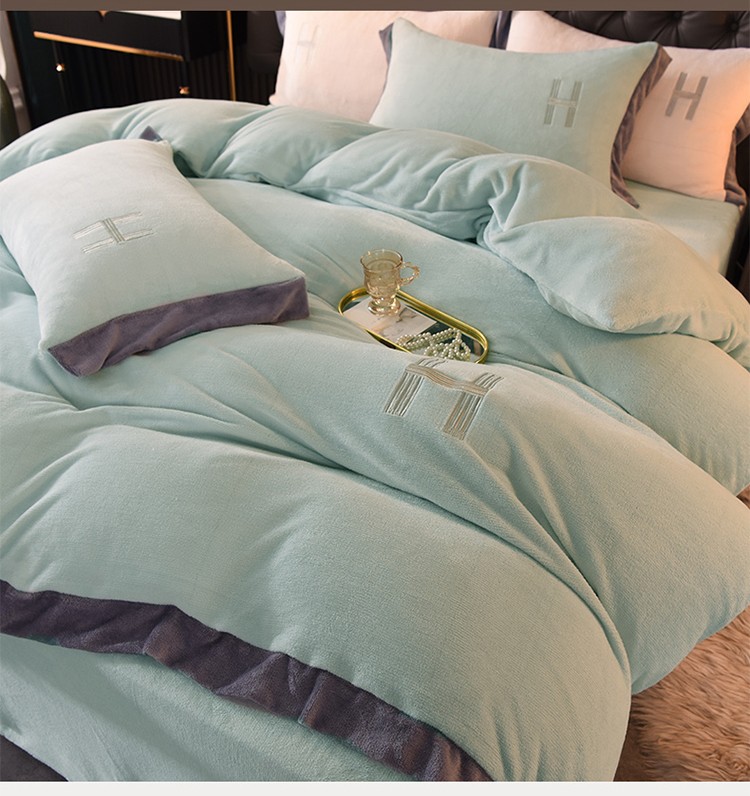 艾米家居 2021新款牛奶绒刺绣H款四件套 豆绿