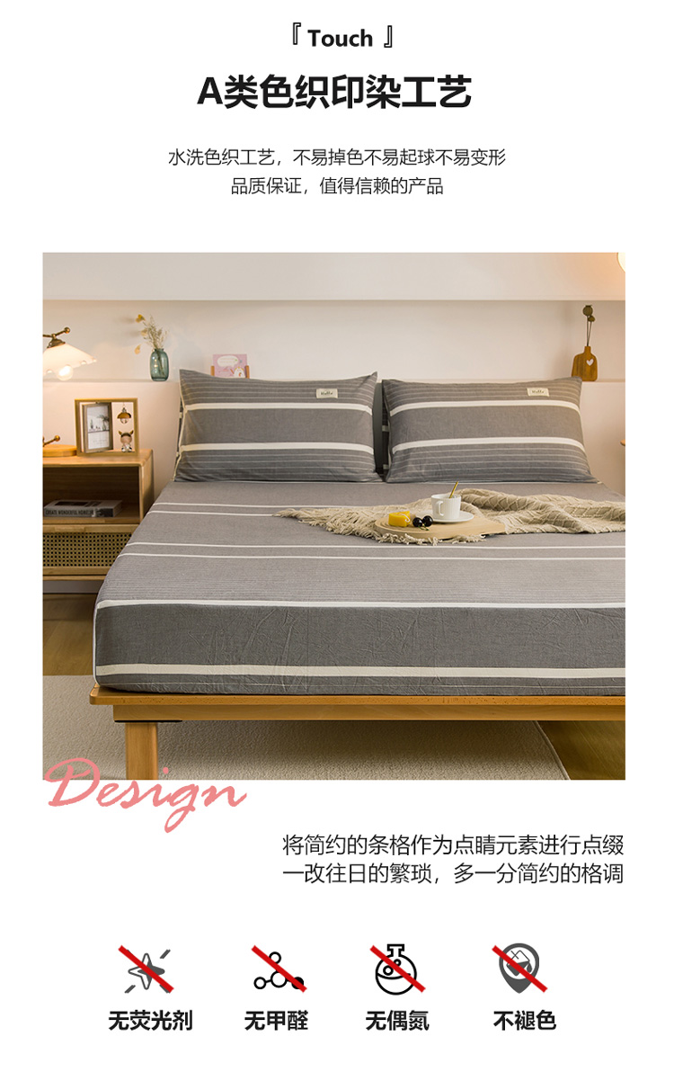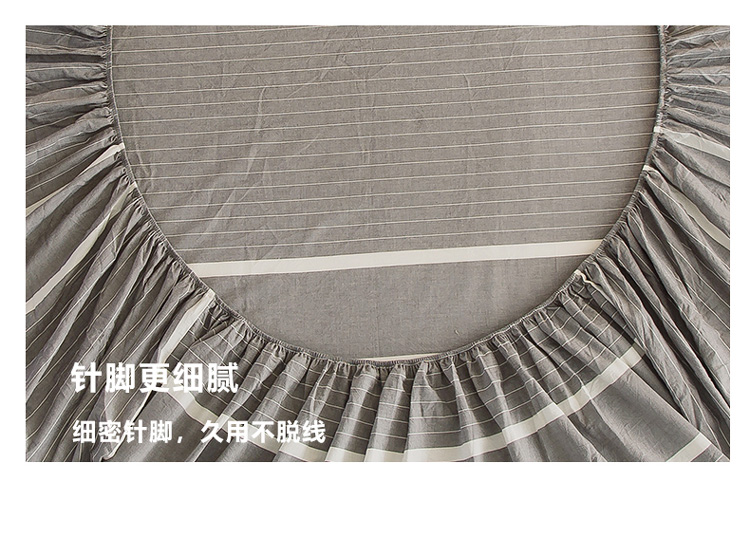 柠萌2021新款全棉色织水洗棉单床笠 宽双线冷灰