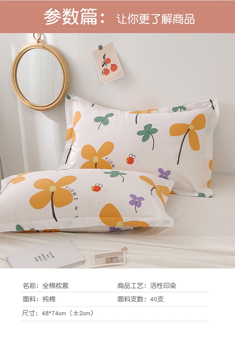 • 91家纺网 家纺一手货源 找家纺 锦绣万家 2021新款纯棉单人枕套全棉枕套单只48*74cm 芳华
