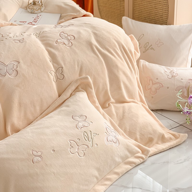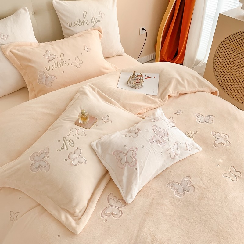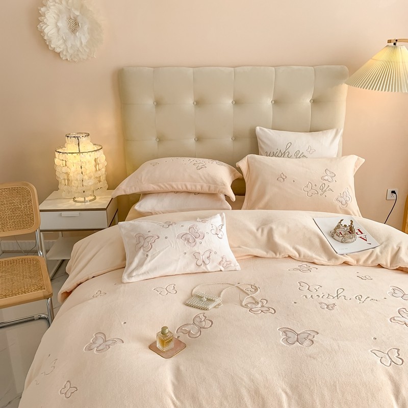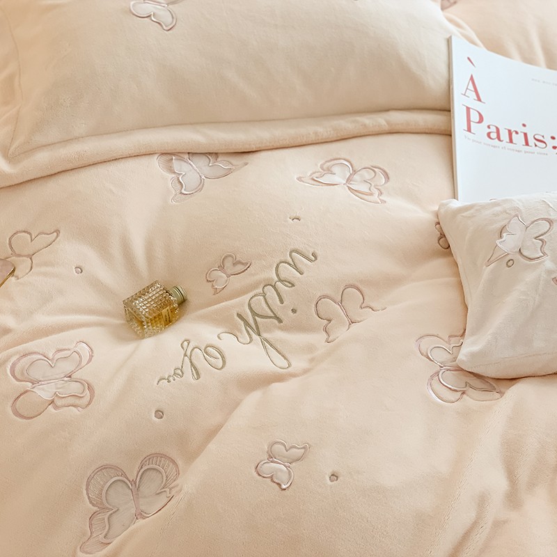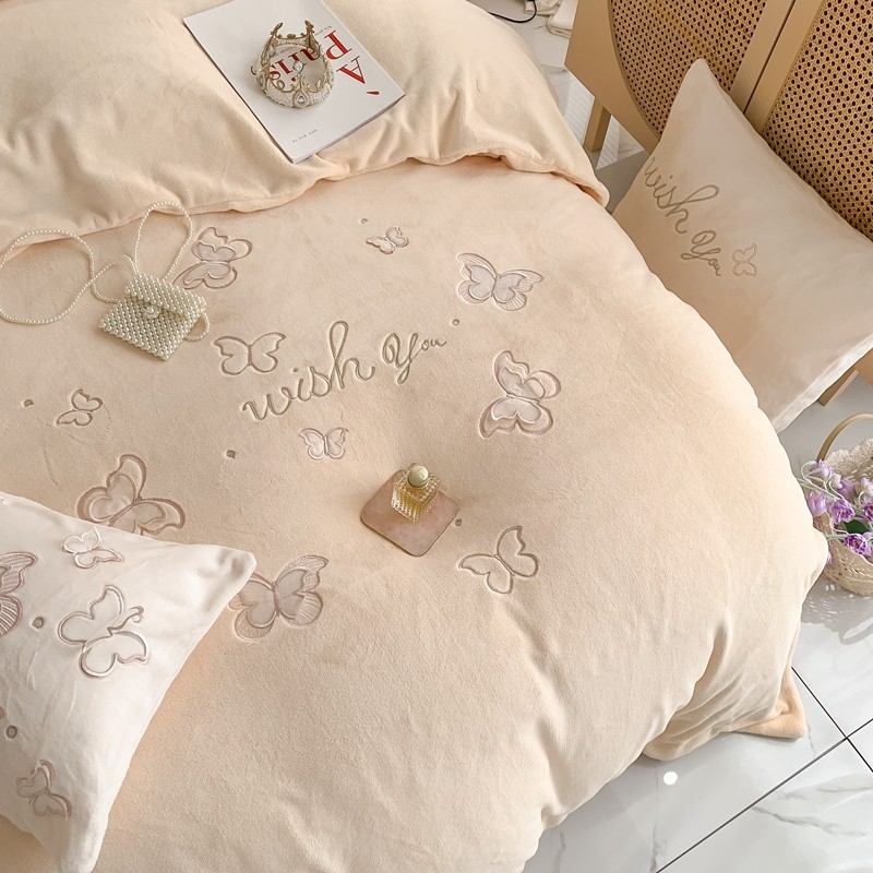 星尚 2021新款A类进口牛奶绒加厚水晶绒绣花四件套 蝴蝶仙子-奶杏
