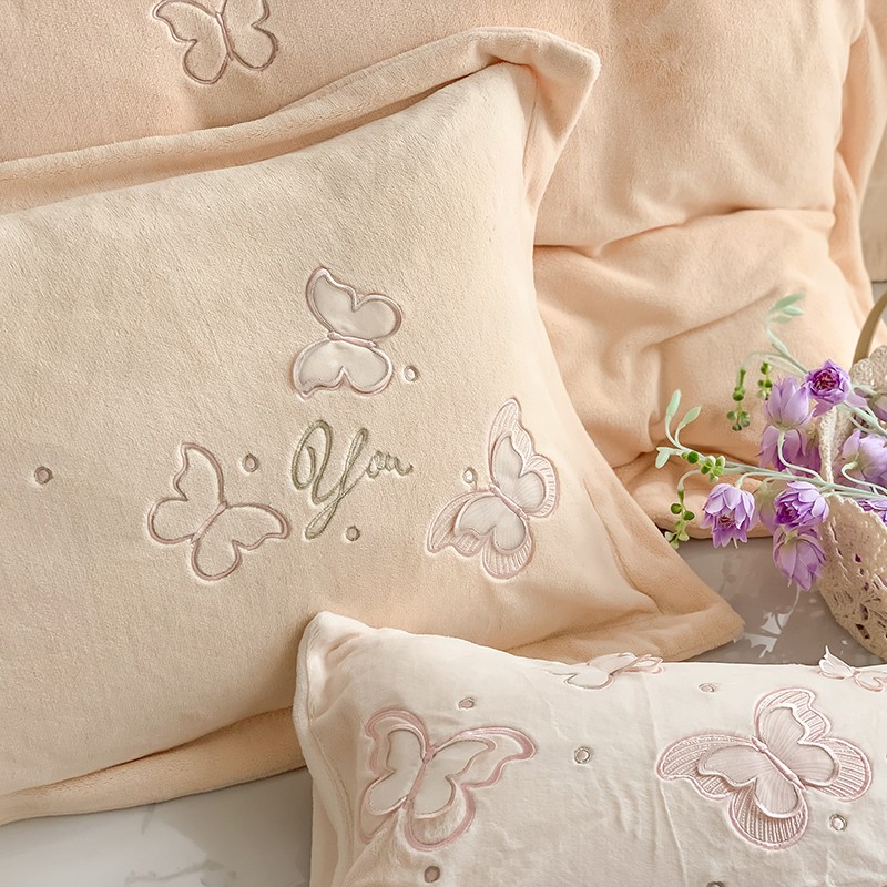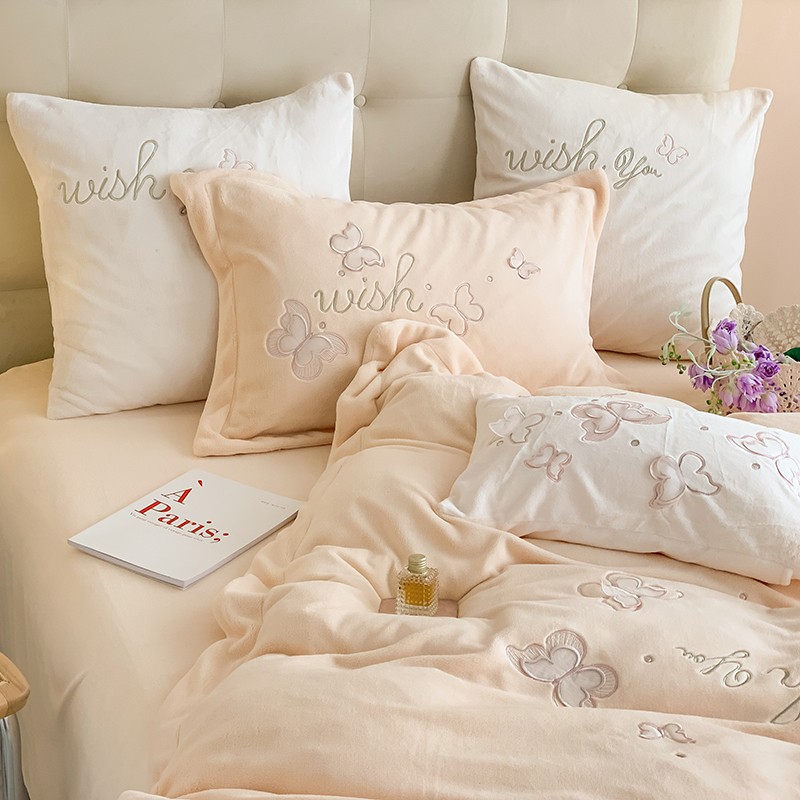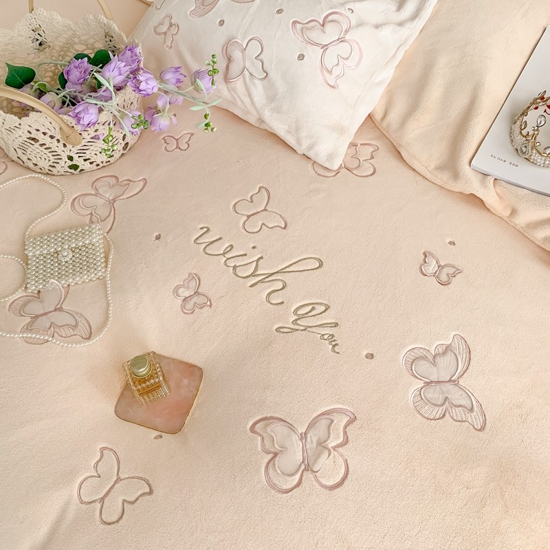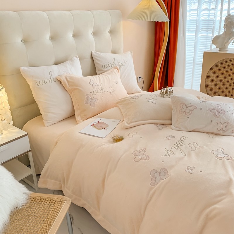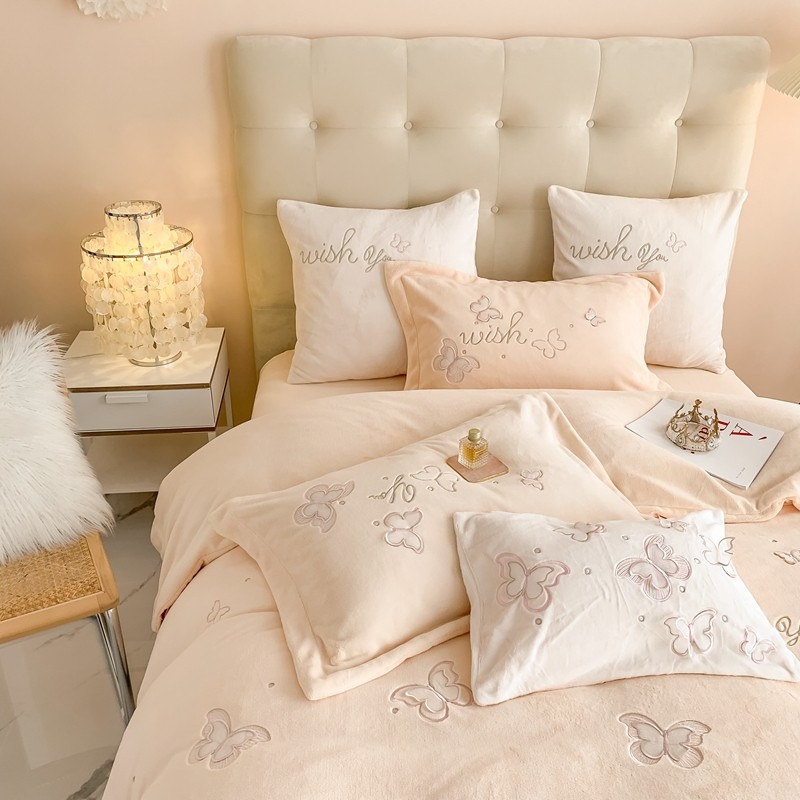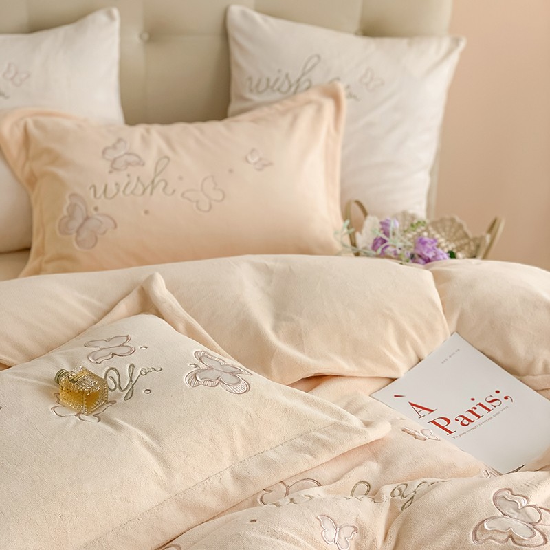 星尚 2021新款A类进口牛奶绒加厚水晶绒绣花四件套 蝴蝶仙子-奶杏