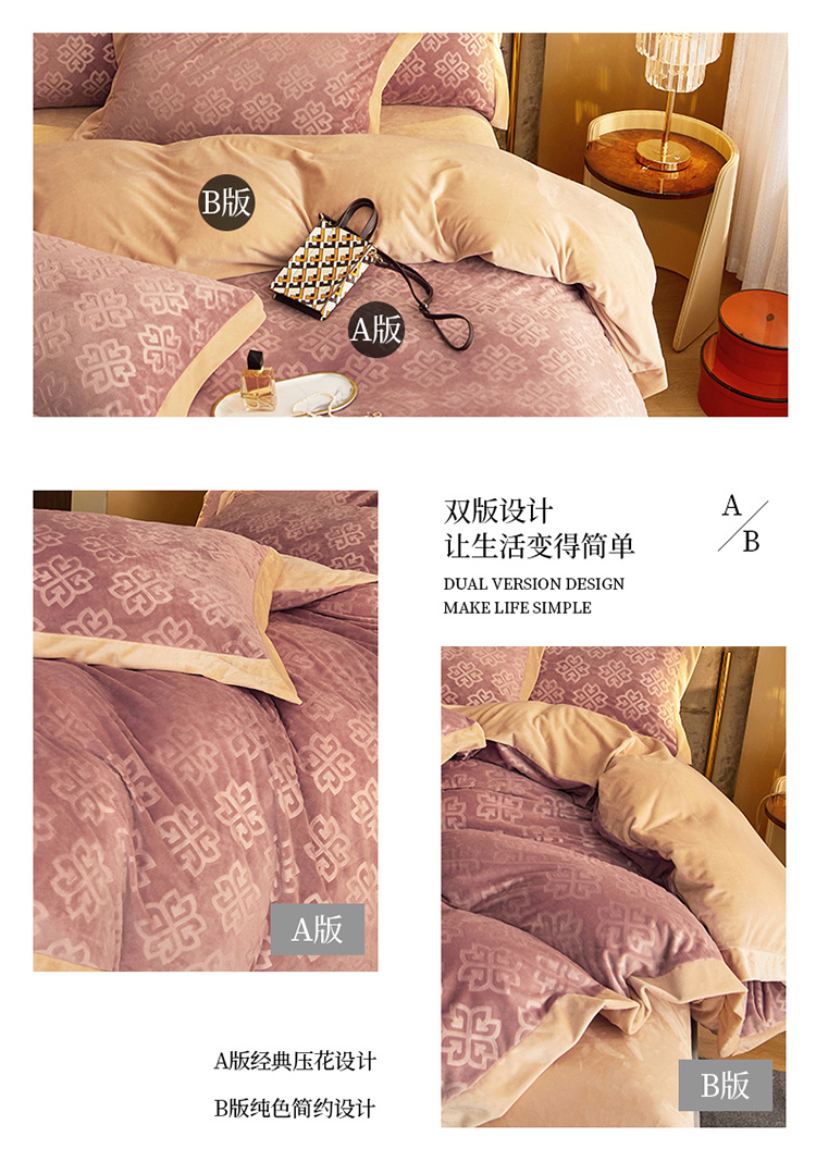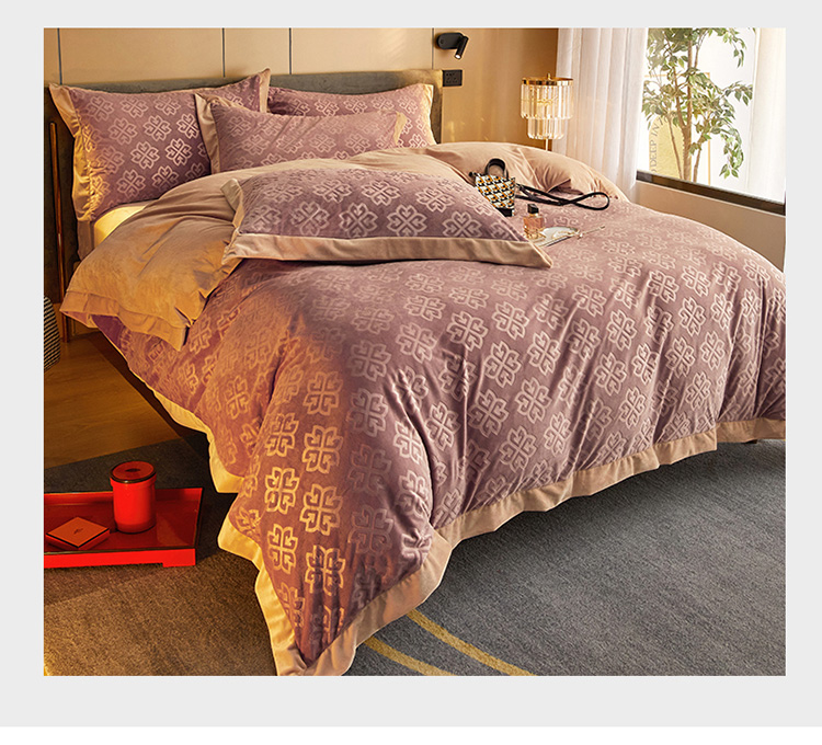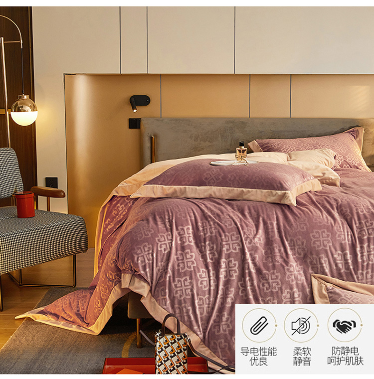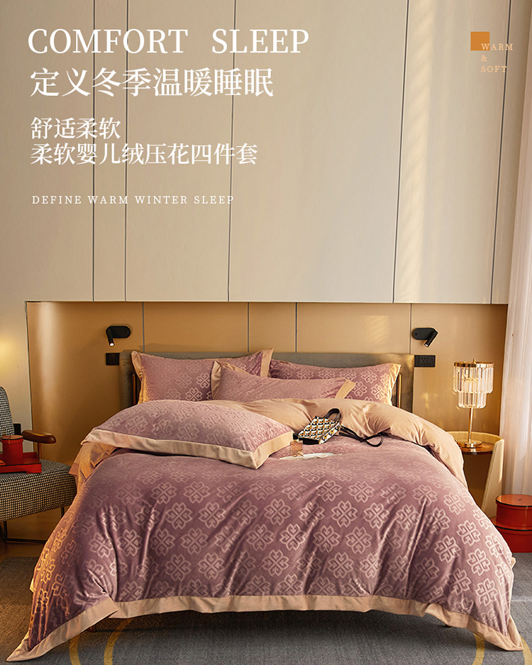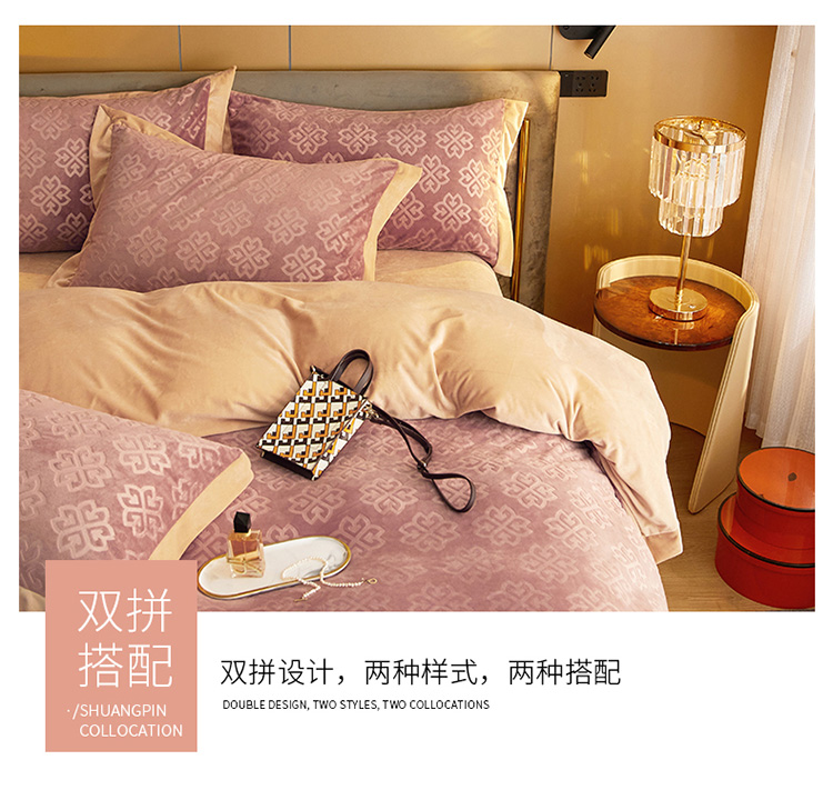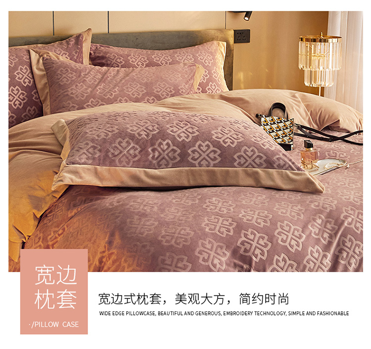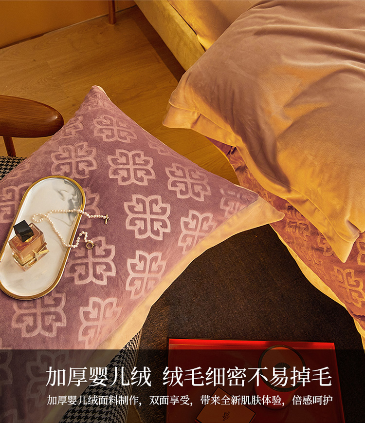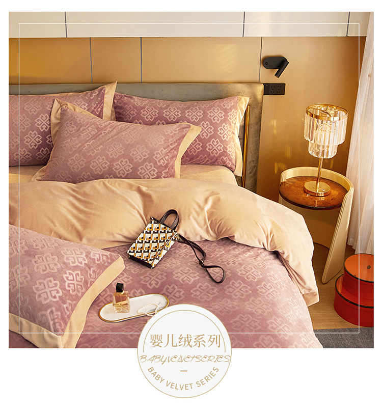 爱缦2021新款格调系列棚拍230克婴儿绒四件套 萝莉粉