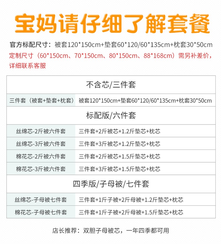 三件套不含芯(被套+垫套+枕套) | ¥50.00 |