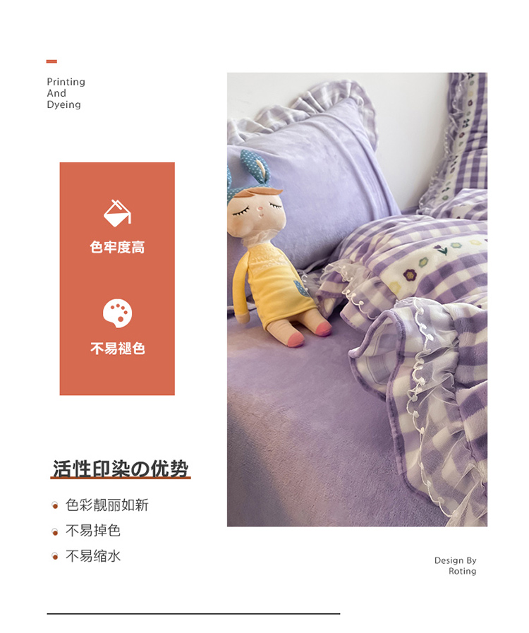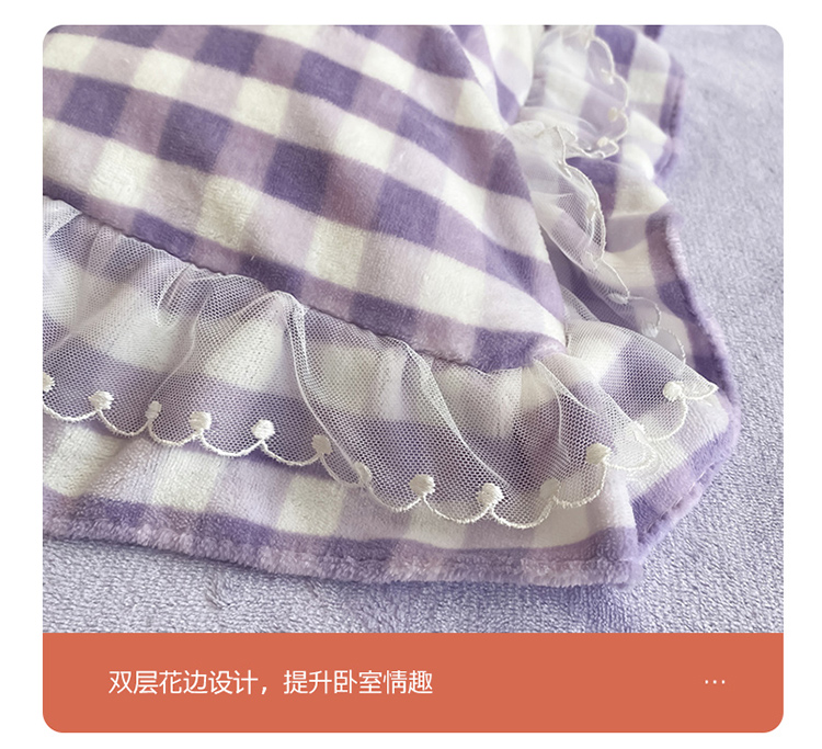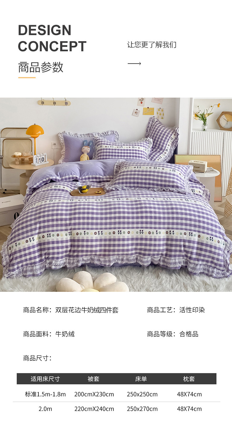商品名称:眠屿家纺 2021新款韩版双层花边高克重牛奶绒四件套 花悦
