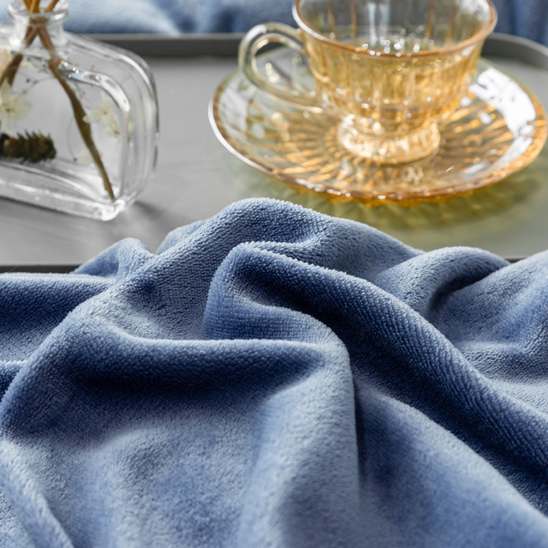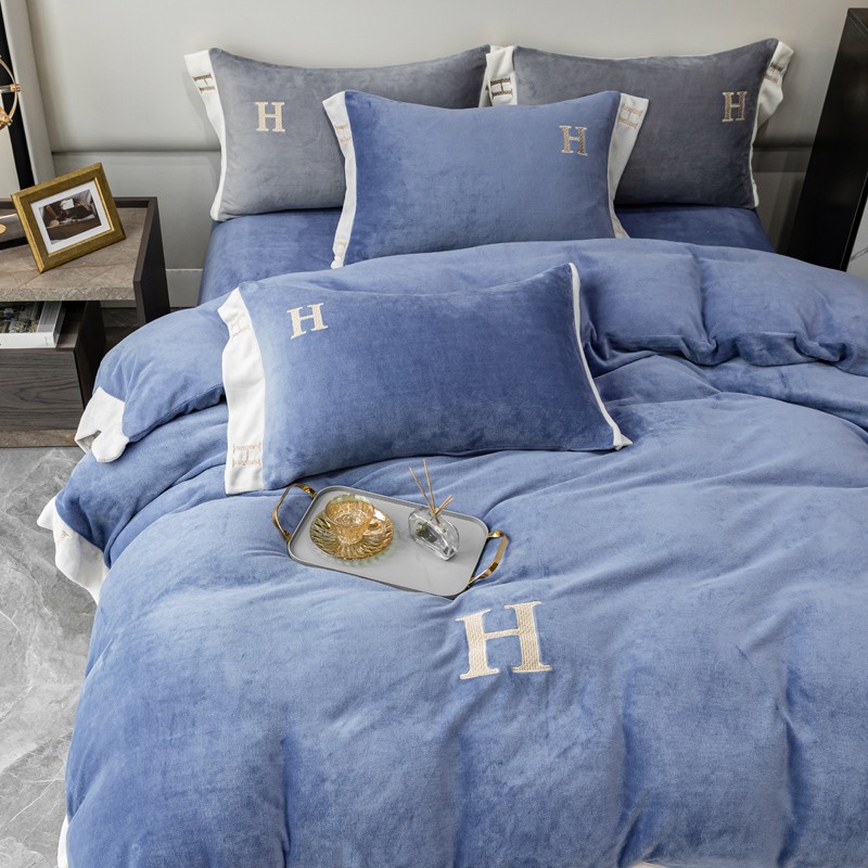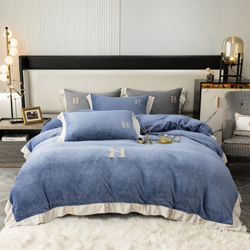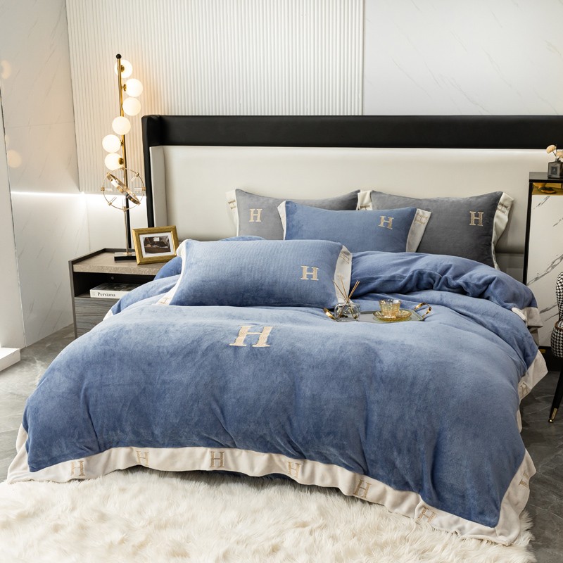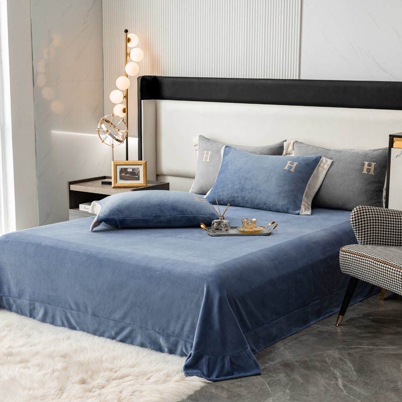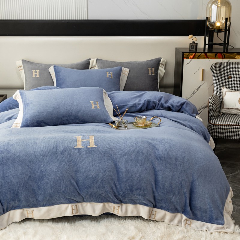 芯贝儿 2021新款加厚牛奶绒轻奢宽边刺绣四件套 希腊蓝