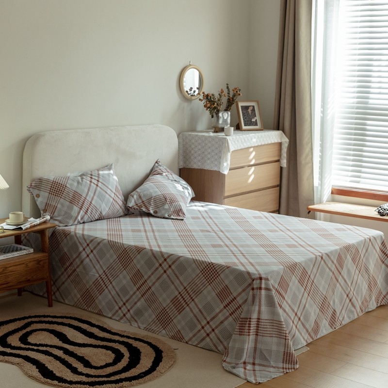 商品名称:寐眠 2021新款全棉磨毛印花床单 遇见-千鸟格棕