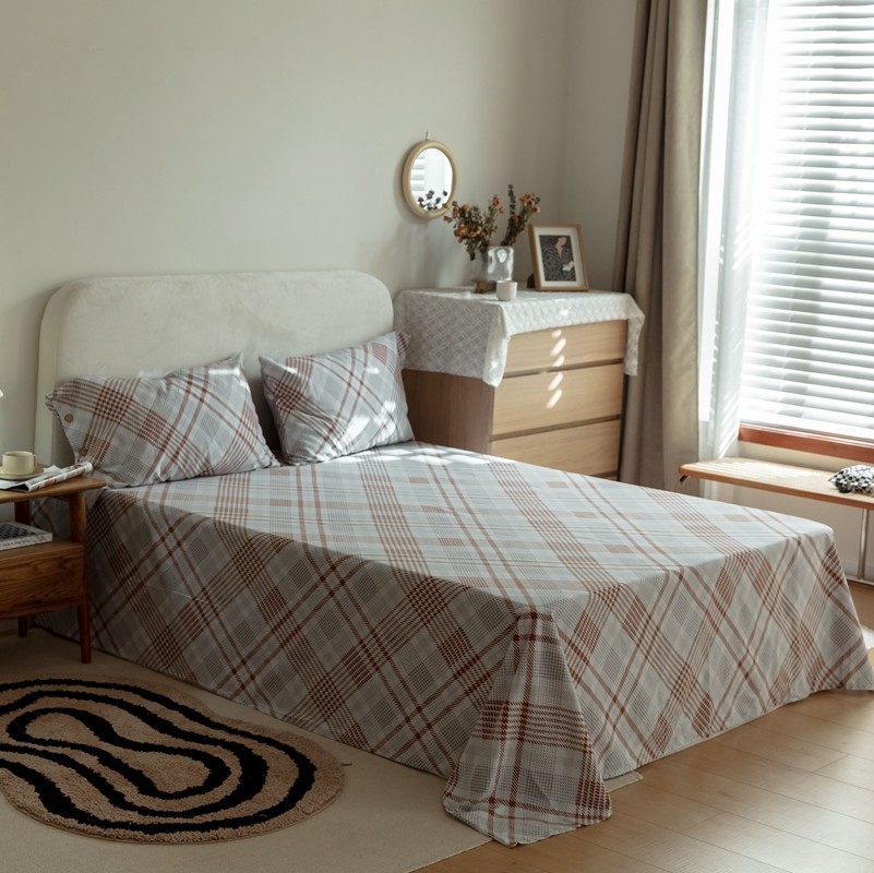 寐眠 2021新款全棉磨毛印花床单 遇见-千鸟格棕