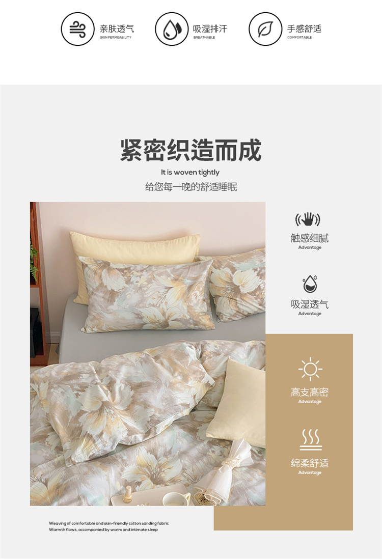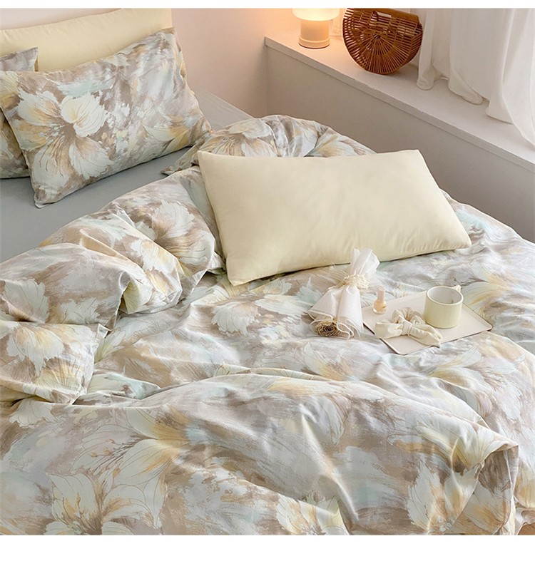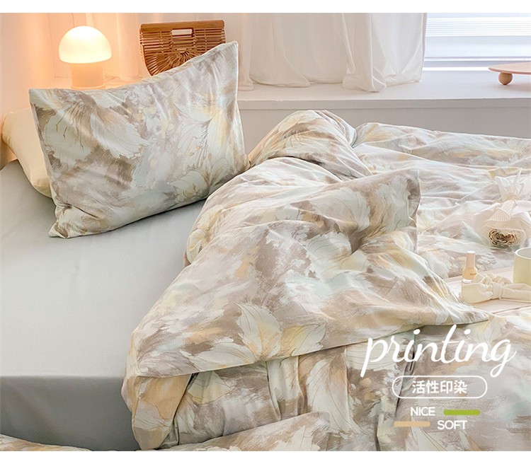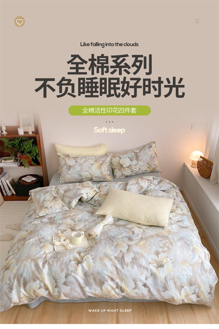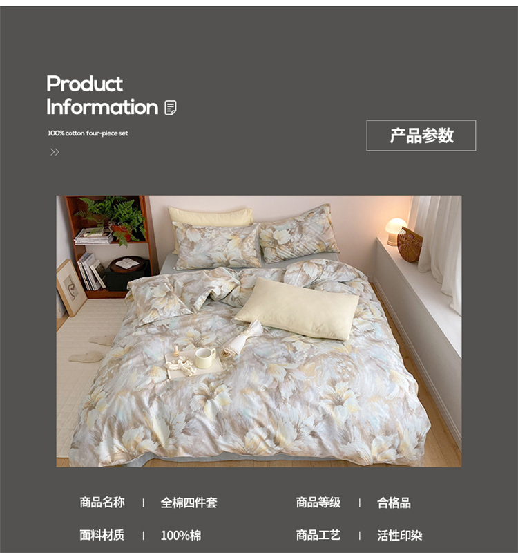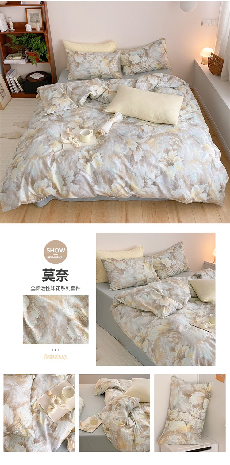 (总)窝米2022新款13370全棉四件套花卉系列,春风里,青柚,秋收,水波纹米驼,水波纹炭黑,恬谧,夏花,云溪红,云溪黄