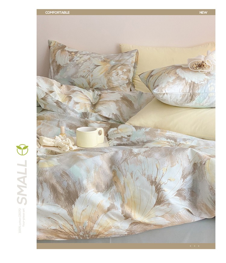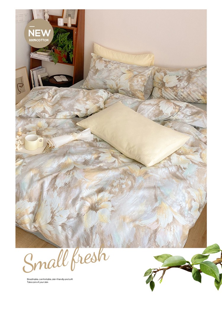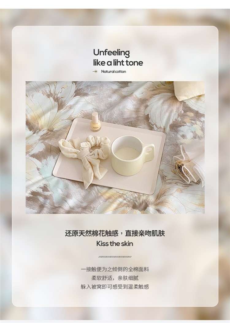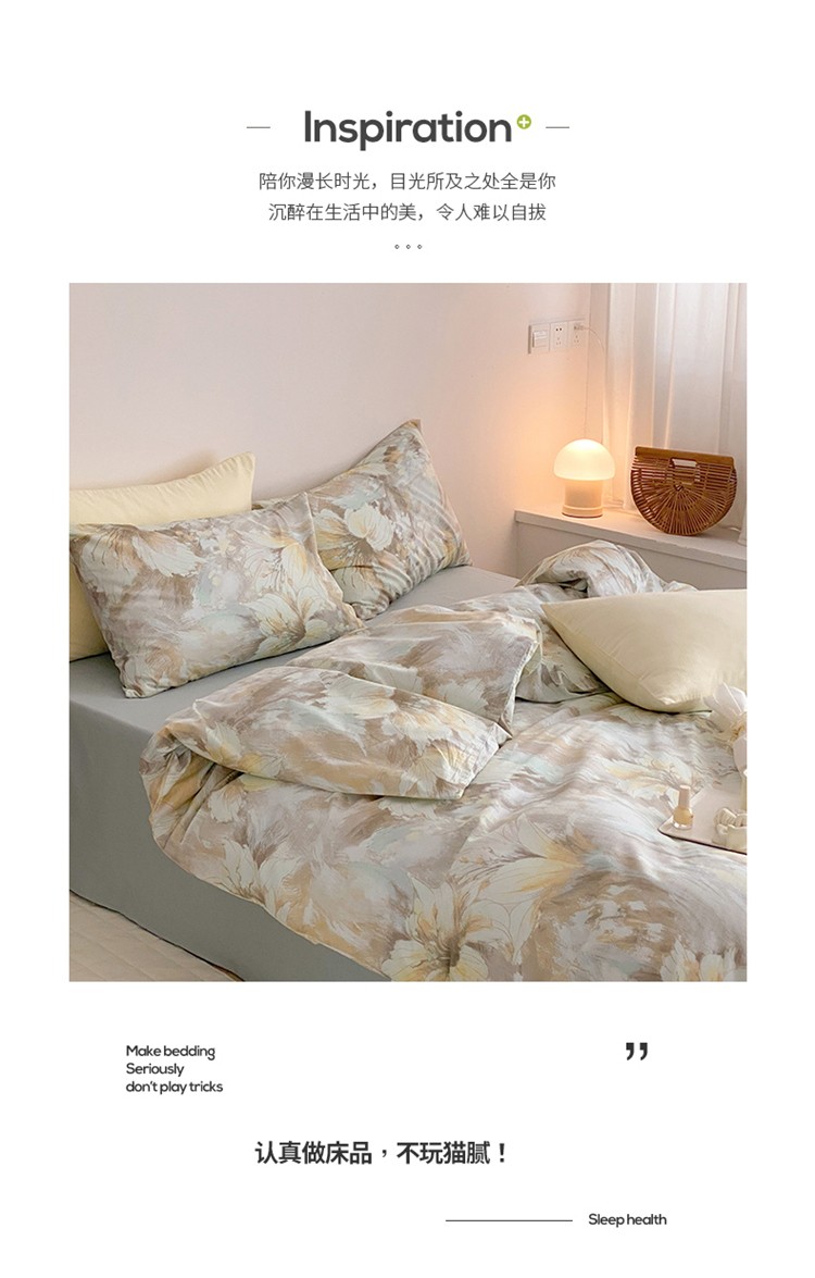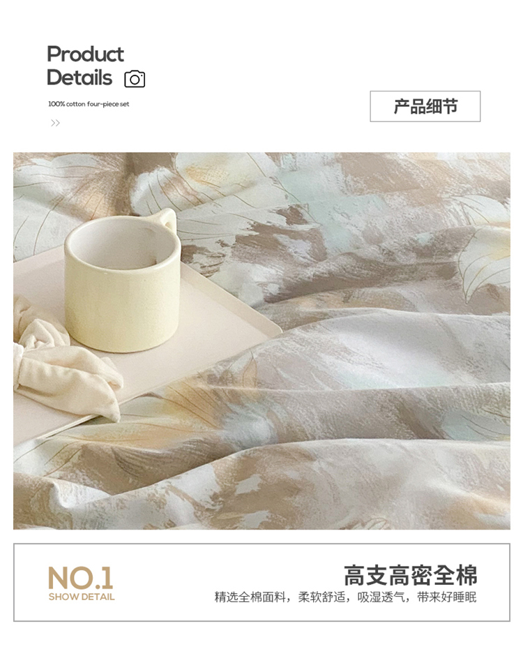 (总)窝米2022新款13370全棉四件套花卉系列,春风里,青柚,秋收,水波纹米驼,水波纹炭黑,恬谧,夏花,云溪红,云溪黄