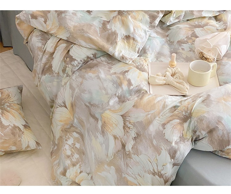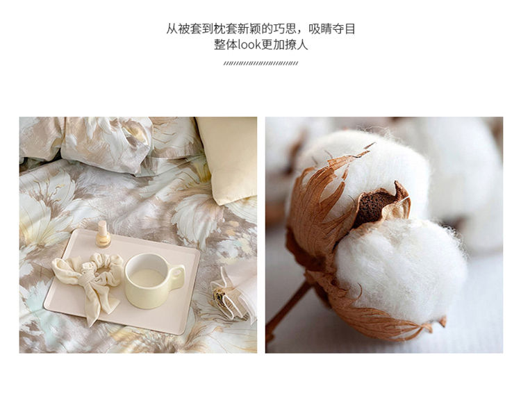 (总)窝米 2025新款数码印花100支长绒棉纯棉工艺花边款四件套-晚意,晚意