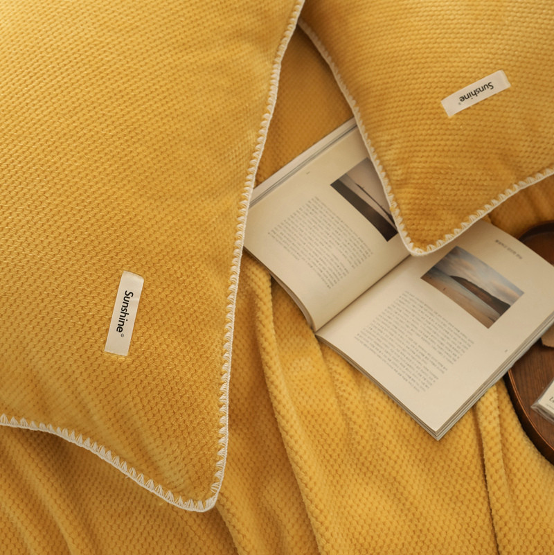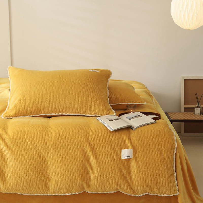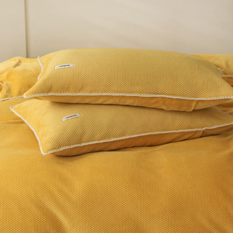 富瑞阁 2024新款太阳格加厚提花牛奶绒枕套对装 郁金黄