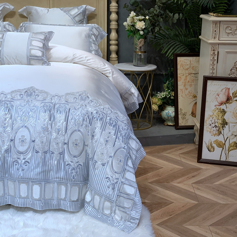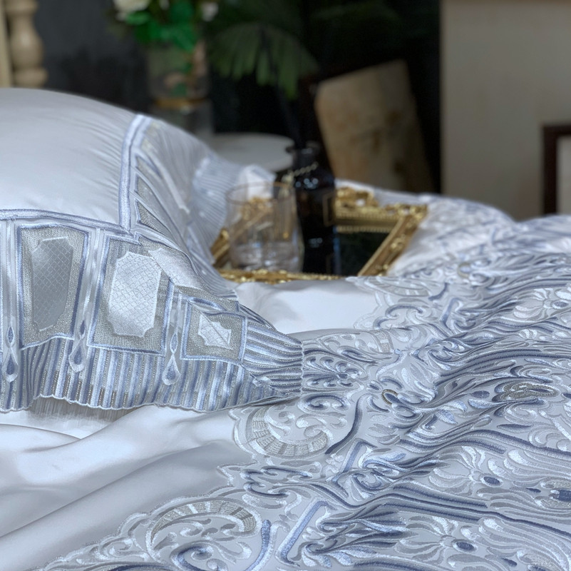 当前位置: 91家纺网 > 商品网购 > 床品套件 > 四件套 > 长绒棉四件套 > 缔缦家纺 2022新款重磅真丝棉系列四件套-米兰之旅 柔白