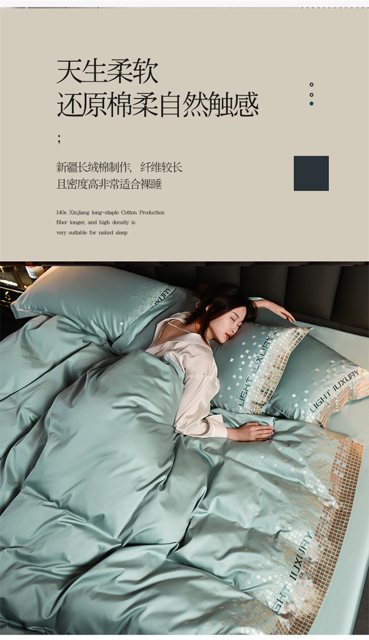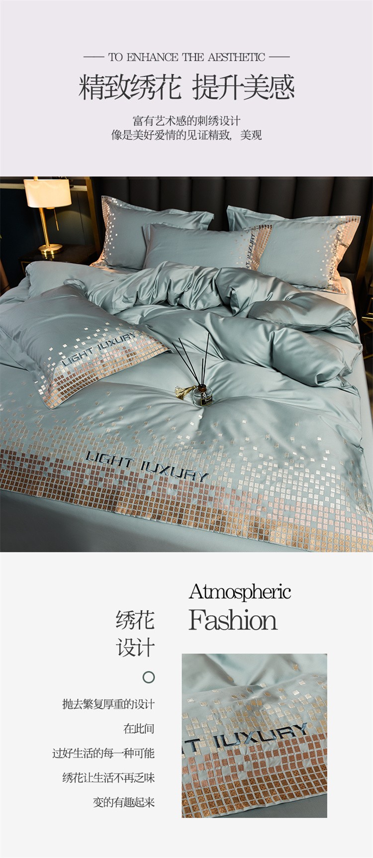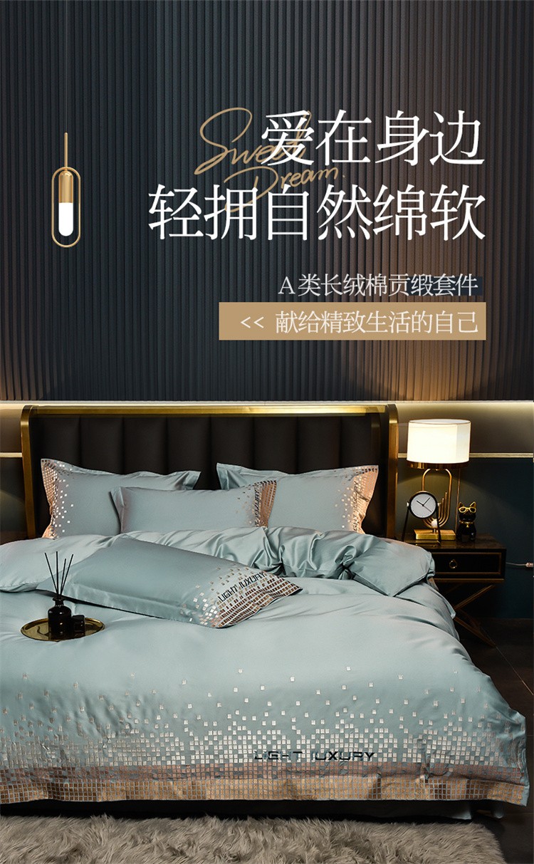 当前位置: 91家纺网 > 商品网购 > 床品套件 > 四件套 > 长绒棉四件套 > 米奈 2024新款A类100S长绒棉刺绣四件套有质检报告-戴纳清新绿