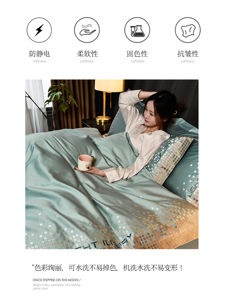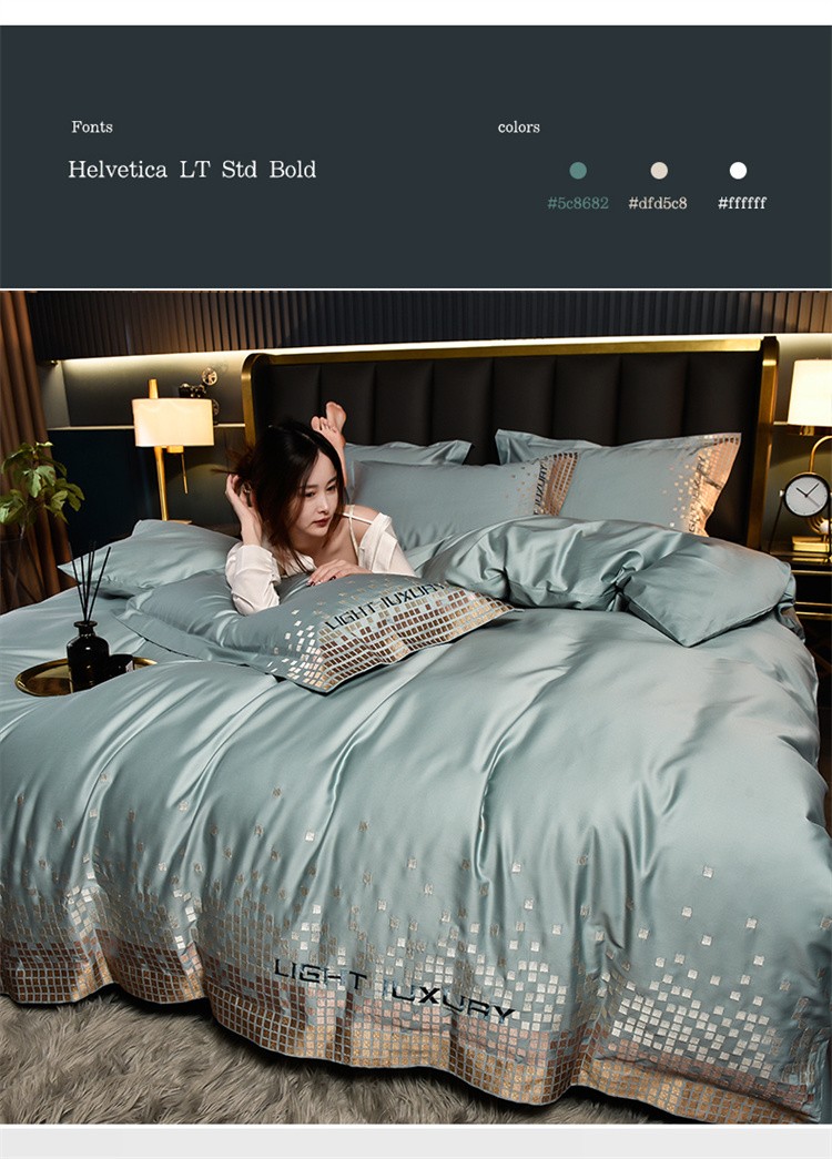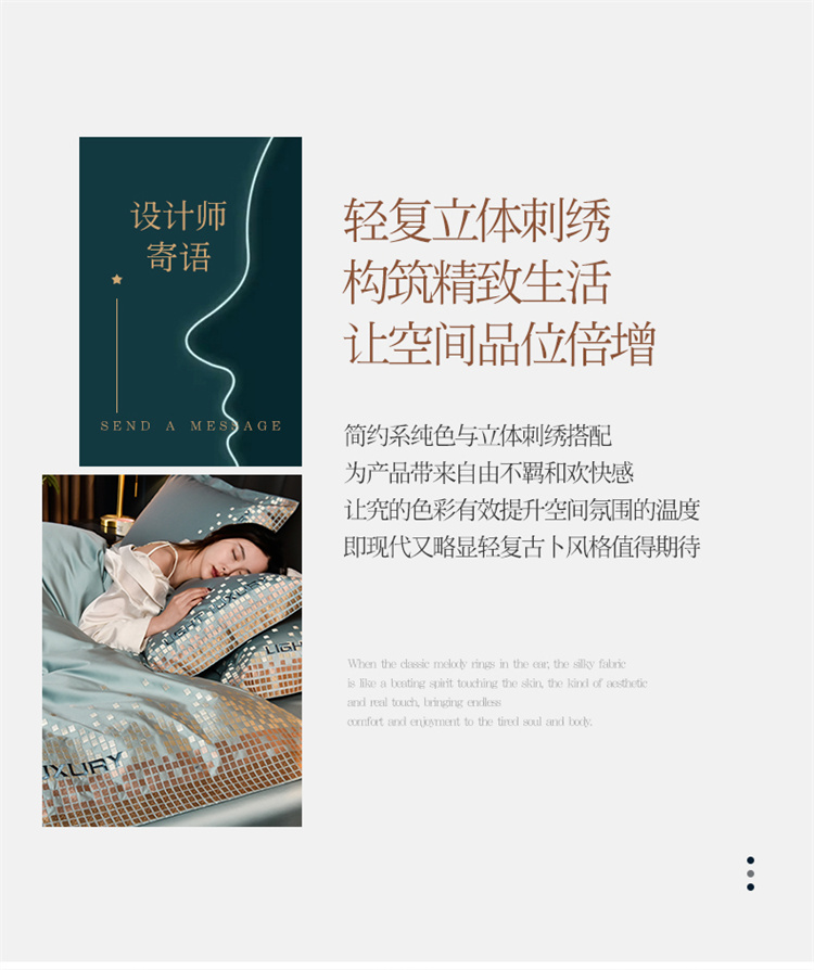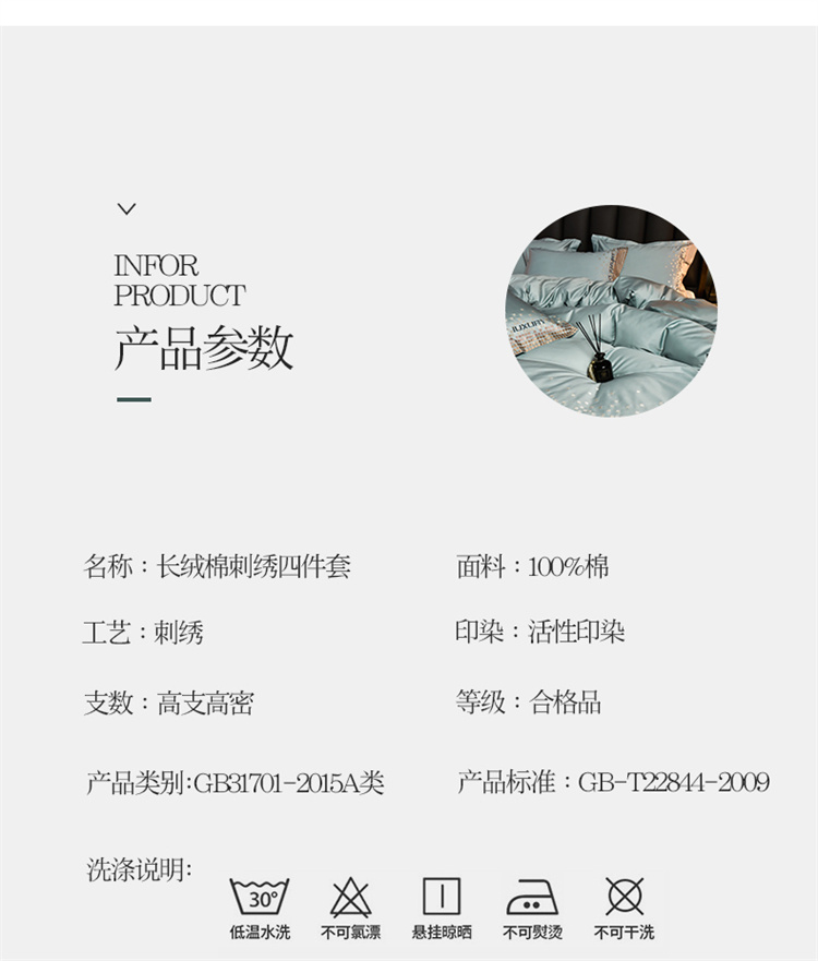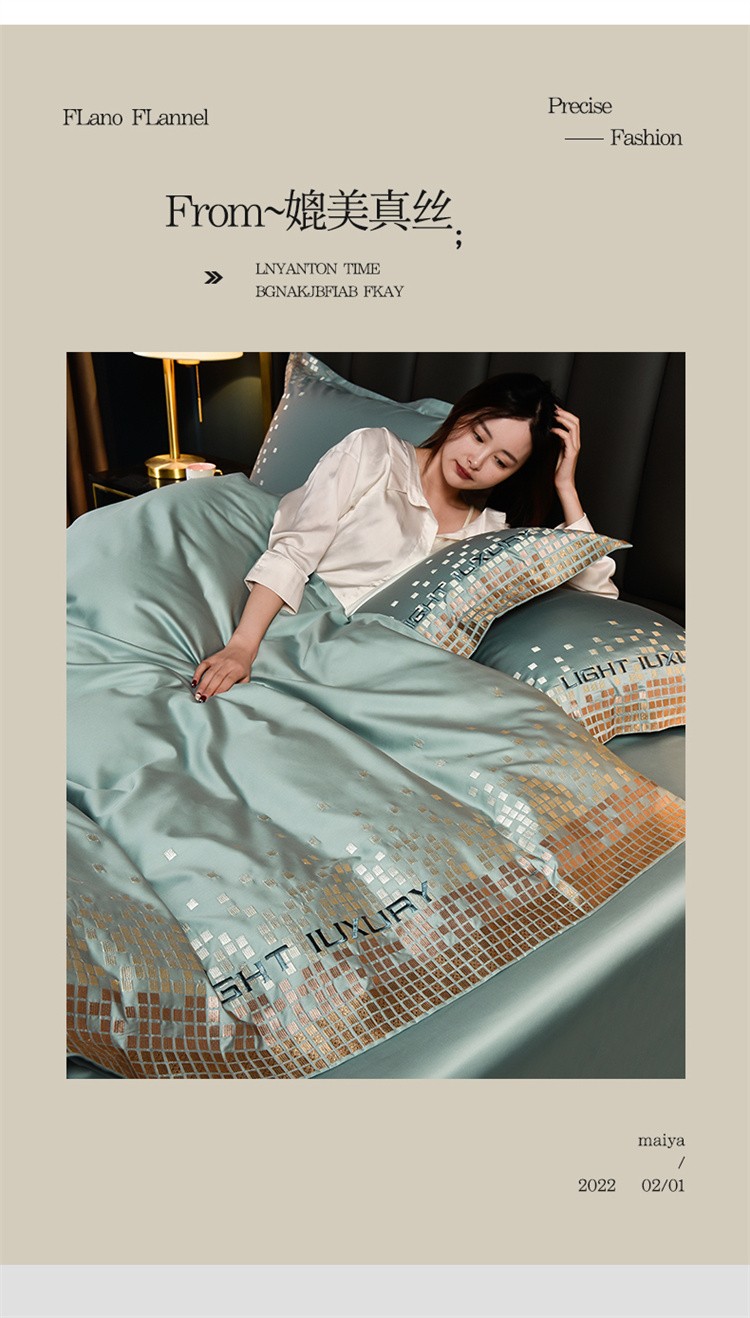 当前位置: 91家纺网 > 商品网购 > 床品套件 > 四件套 > 长绒棉四件套 > 米奈 2024新款A类100S长绒棉刺绣四件套有质检报告-戴纳清新绿