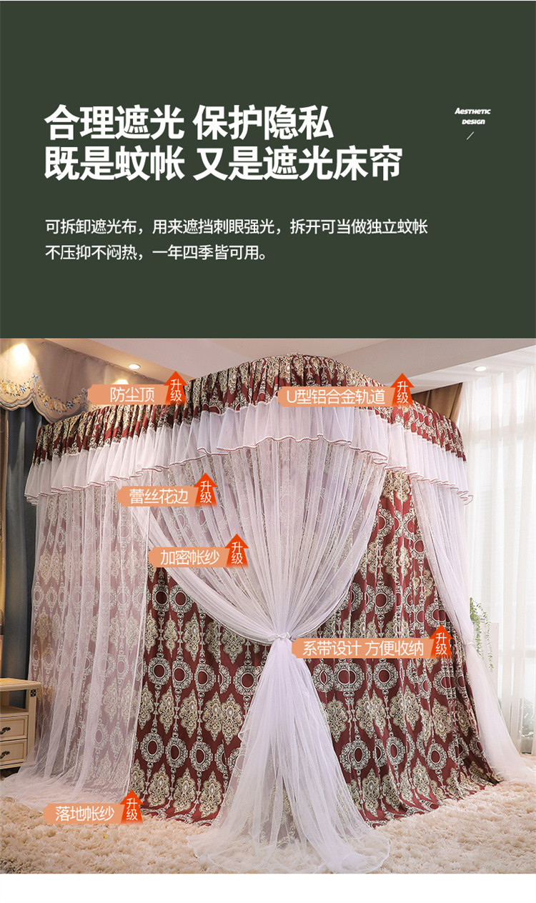 商品名称:薇梦蚊帐 2022新款双层导轨床幔蚊帐 同心缘