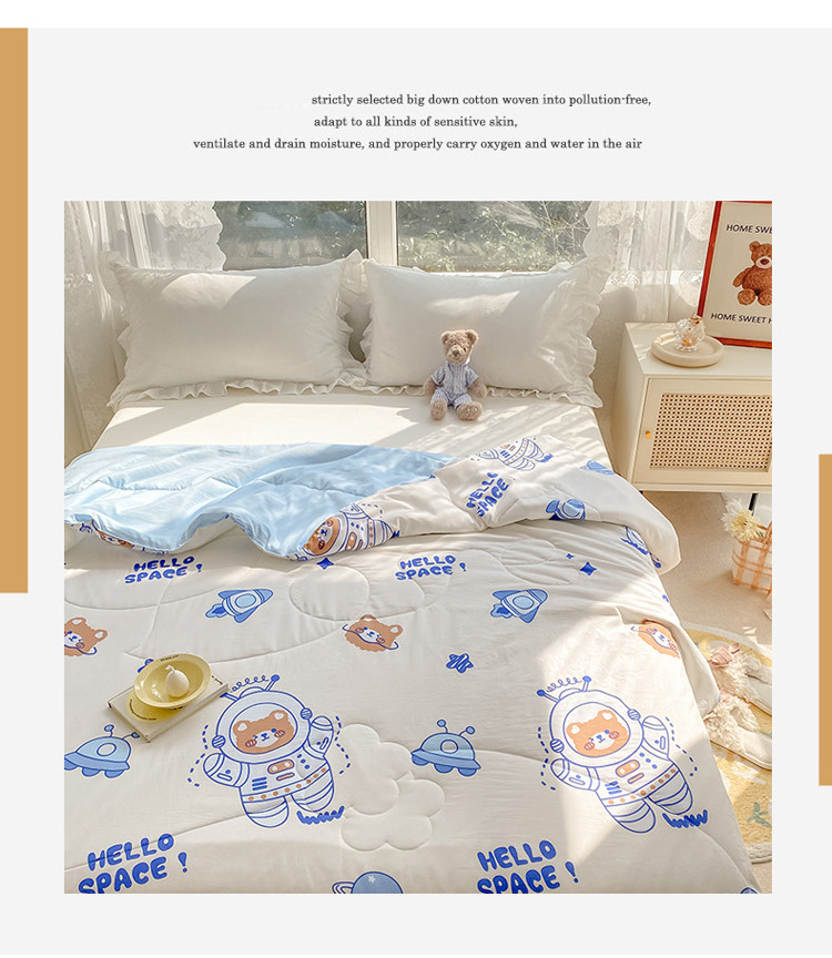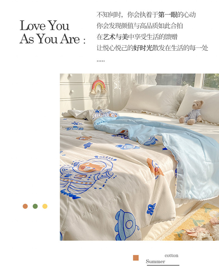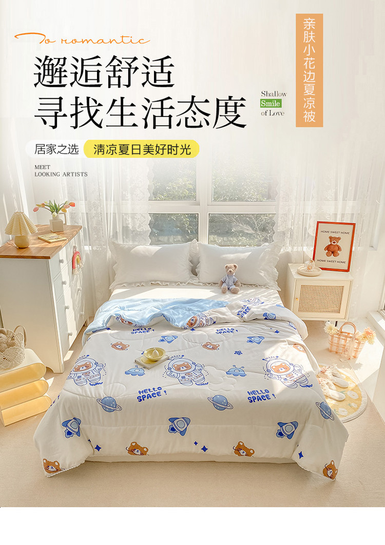 商品名称:寐居家纺 2022新款水洗棉小花边单夏被 宇宙星球