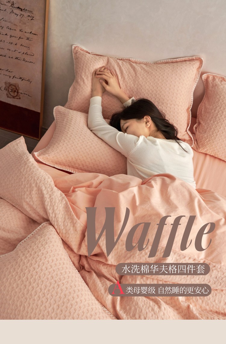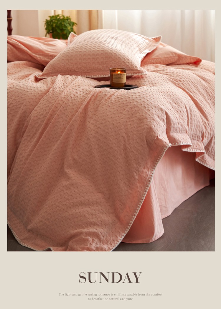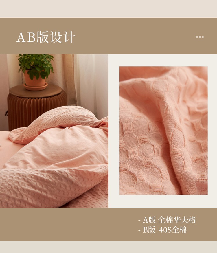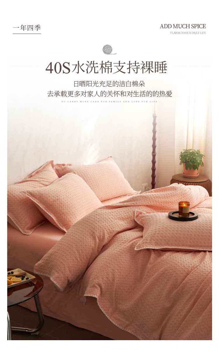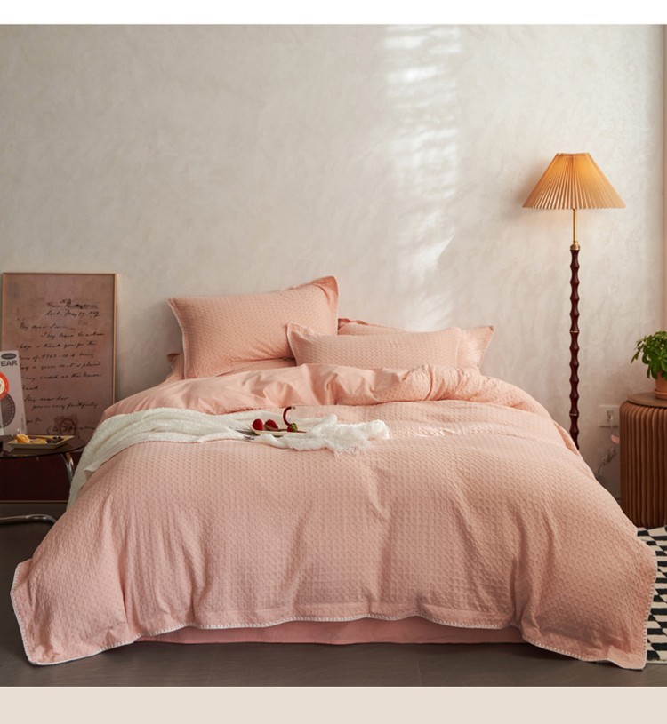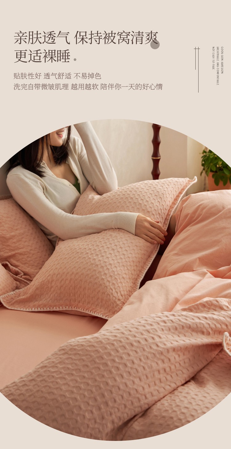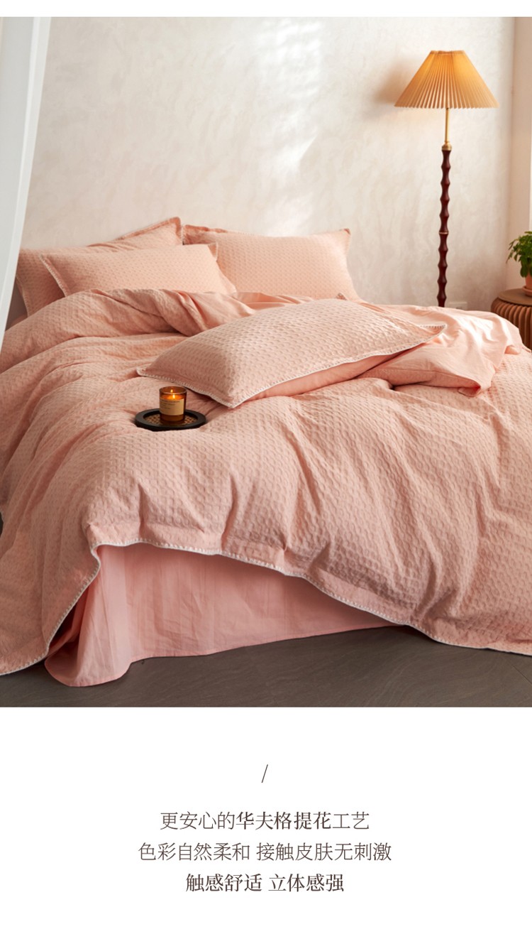 商品名称:风向标2022新款40s华夫格水洗棉四件套 华夫格-樱桃粉
