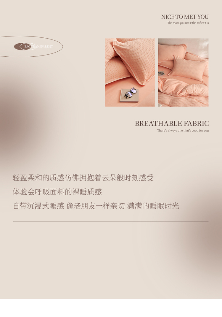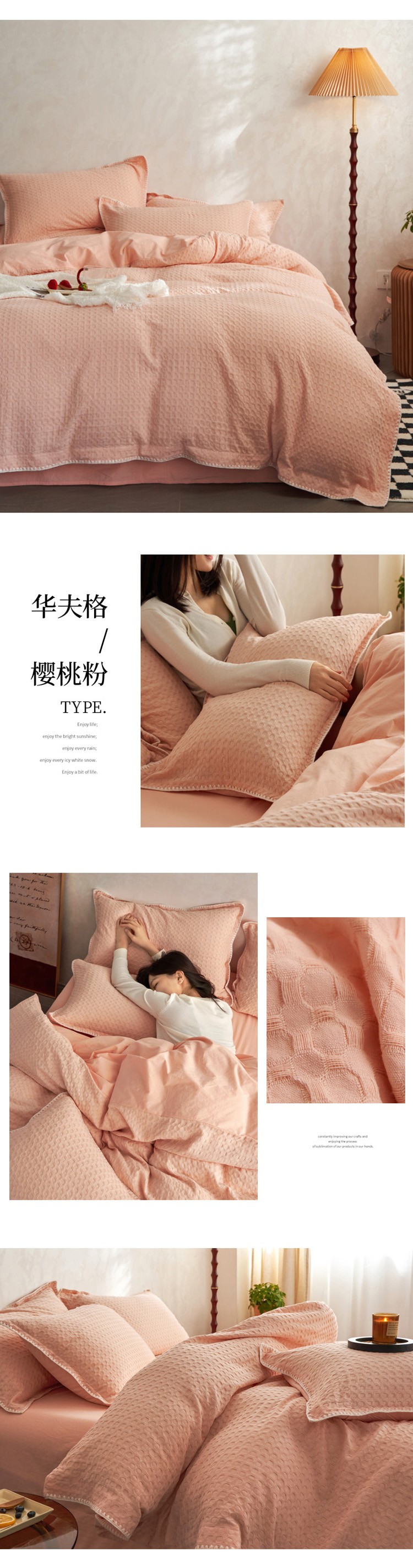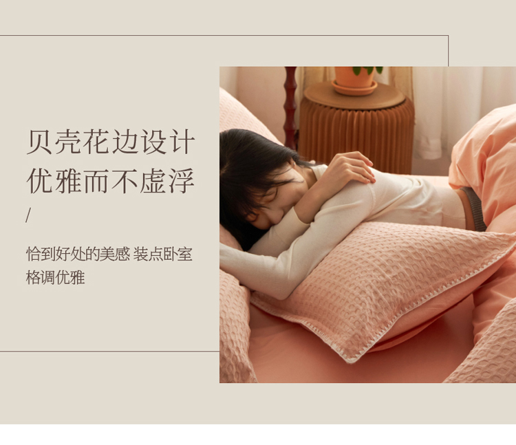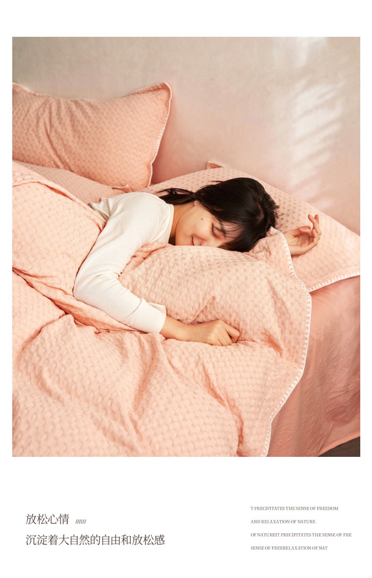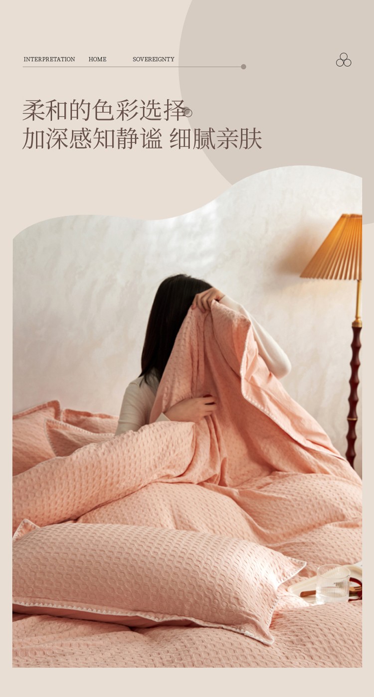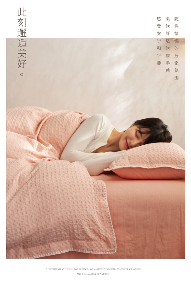 商品名称:风向标2022新款40s华夫格水洗棉四件套 华夫格-樱桃粉