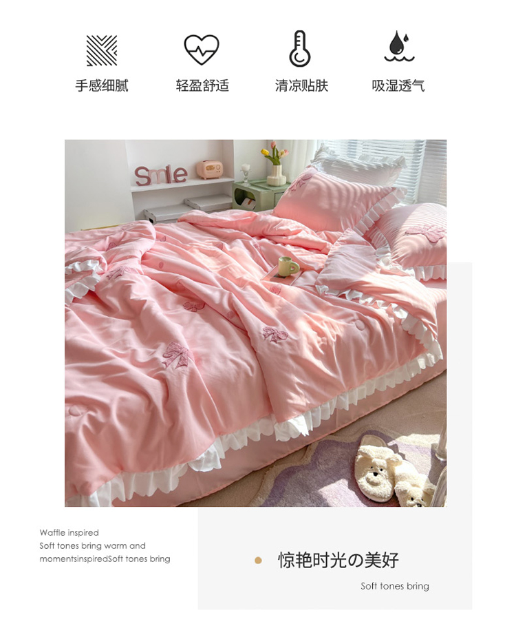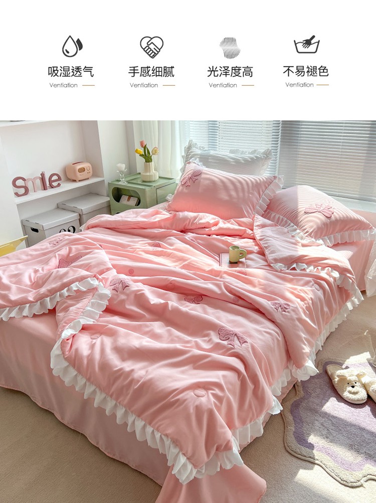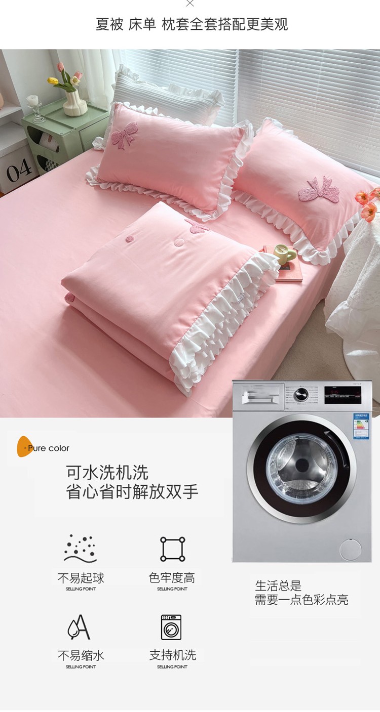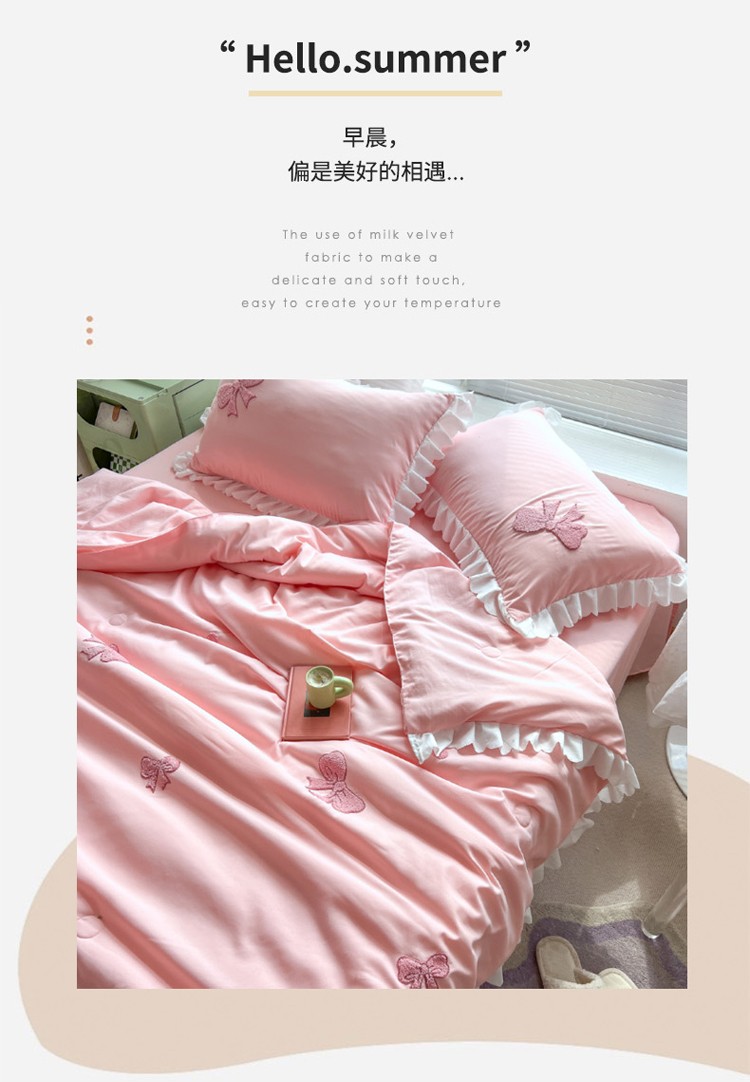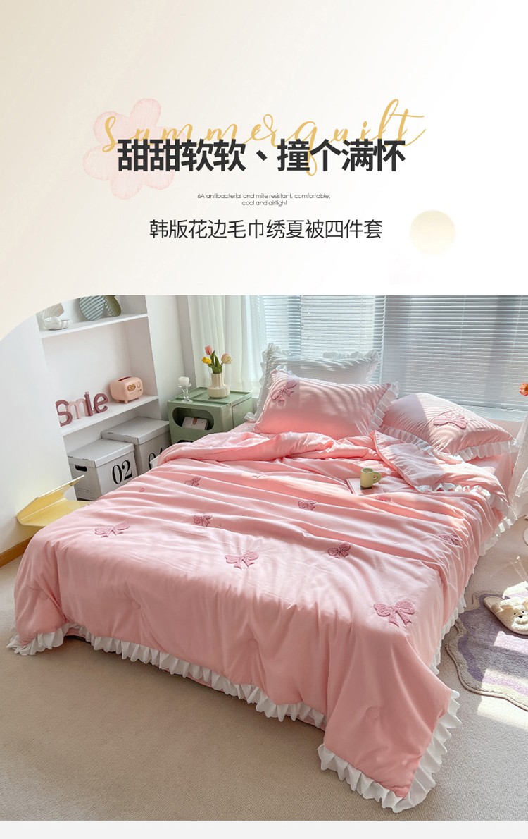 商品名称:沐慕 2022新款毛巾绣洛卡棉夏被四件套 蝴蝶结-粉色
