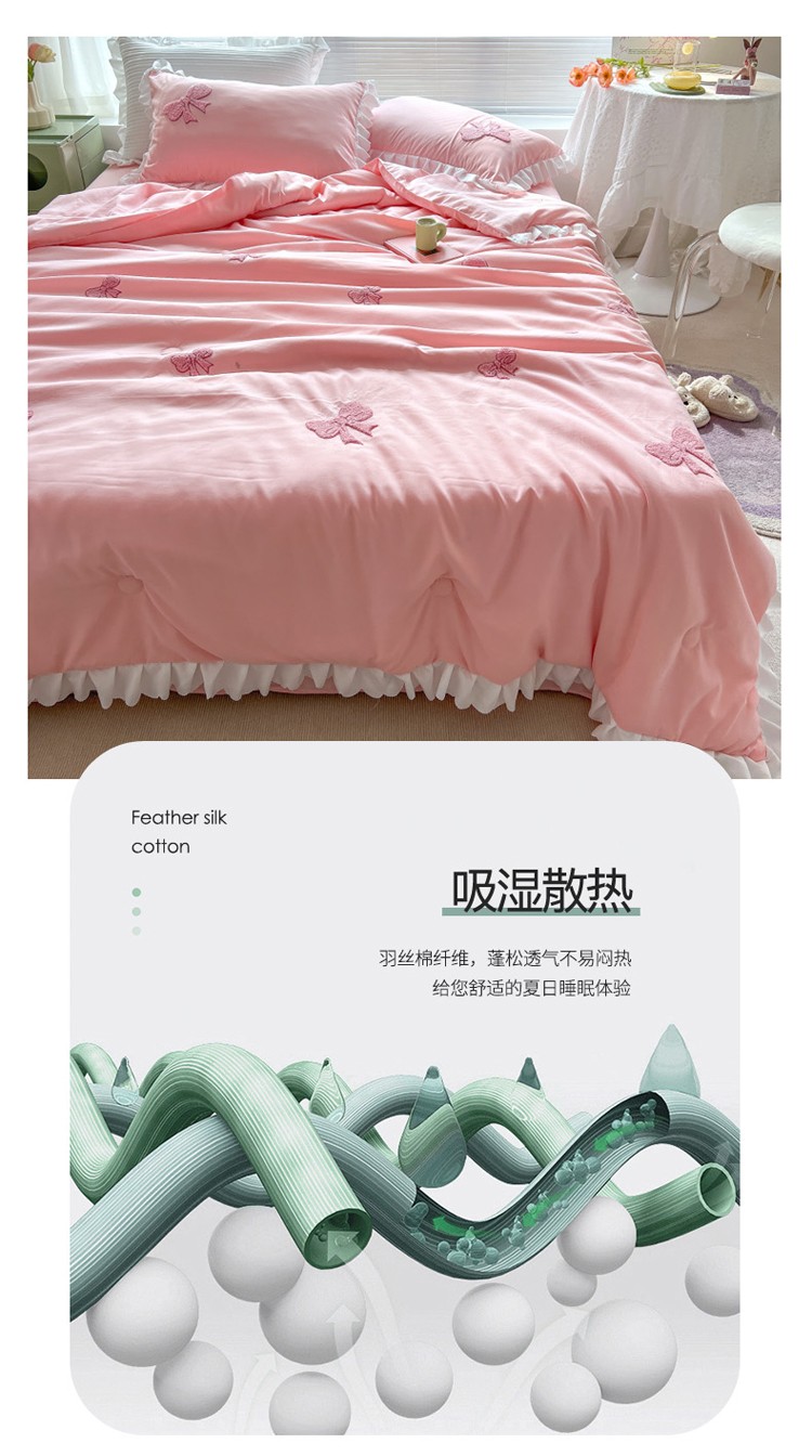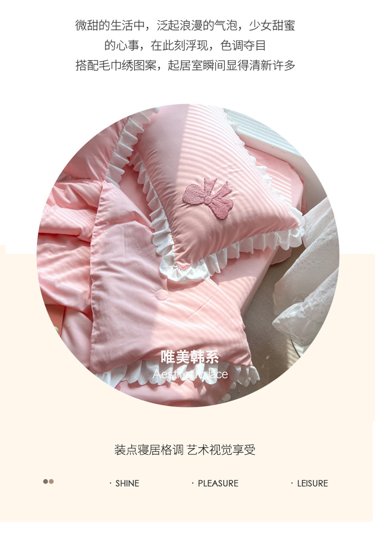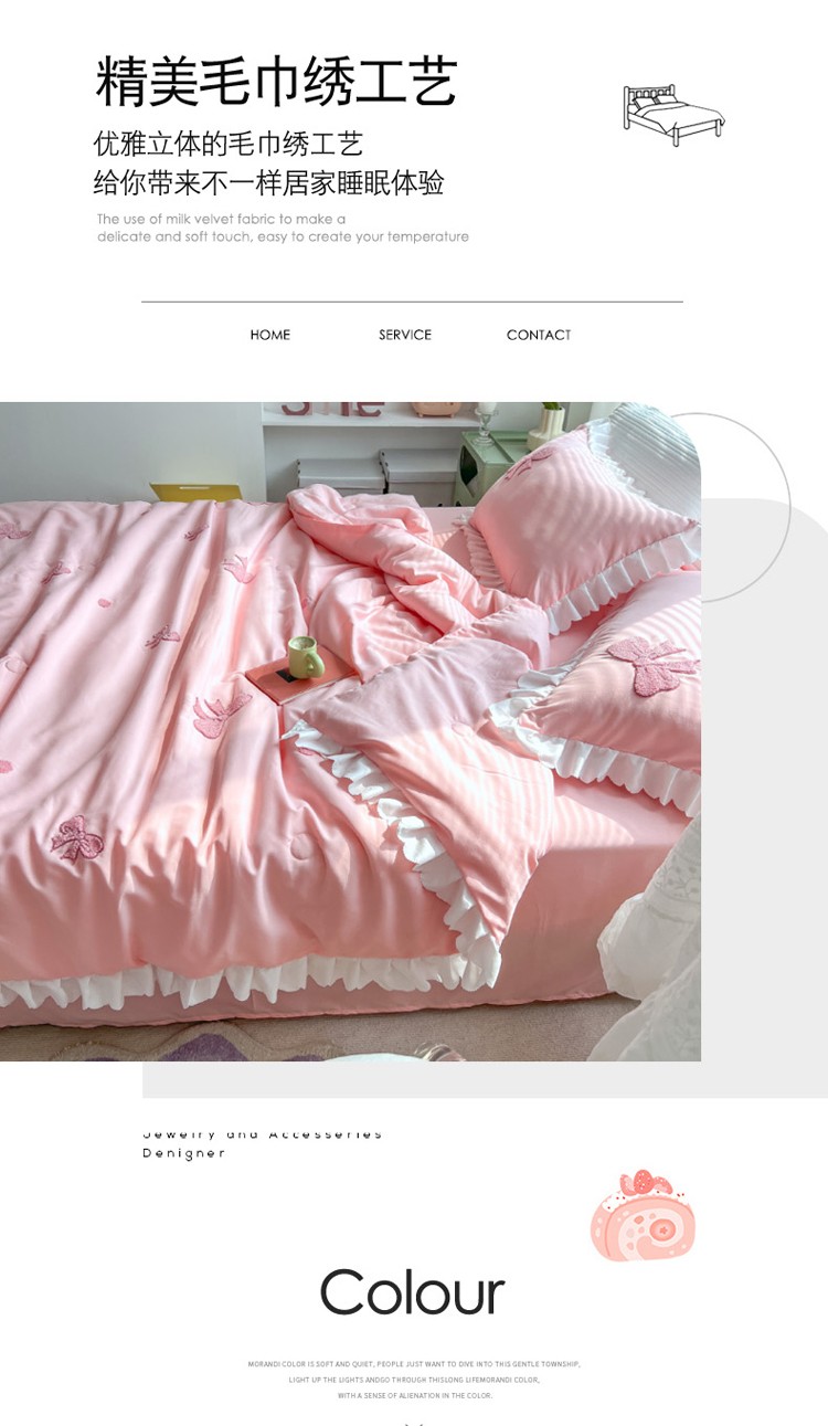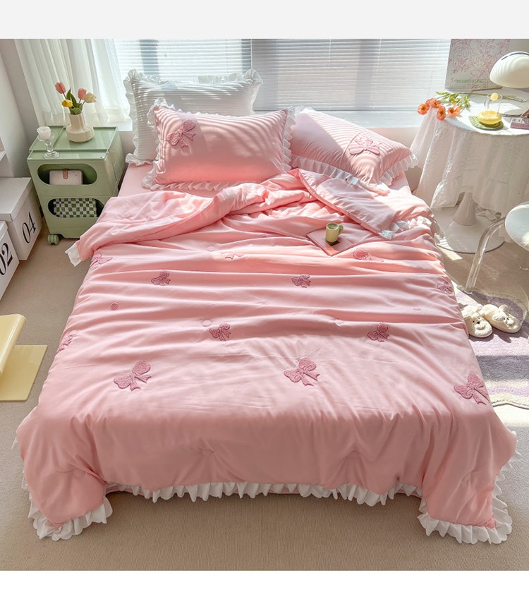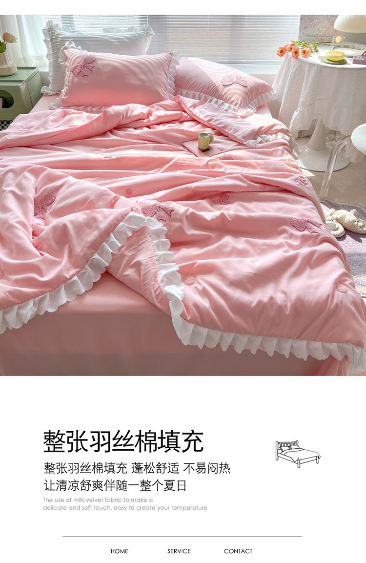 商品名称:沐慕 2022新款毛巾绣洛卡棉夏被四件套 蝴蝶结-粉色