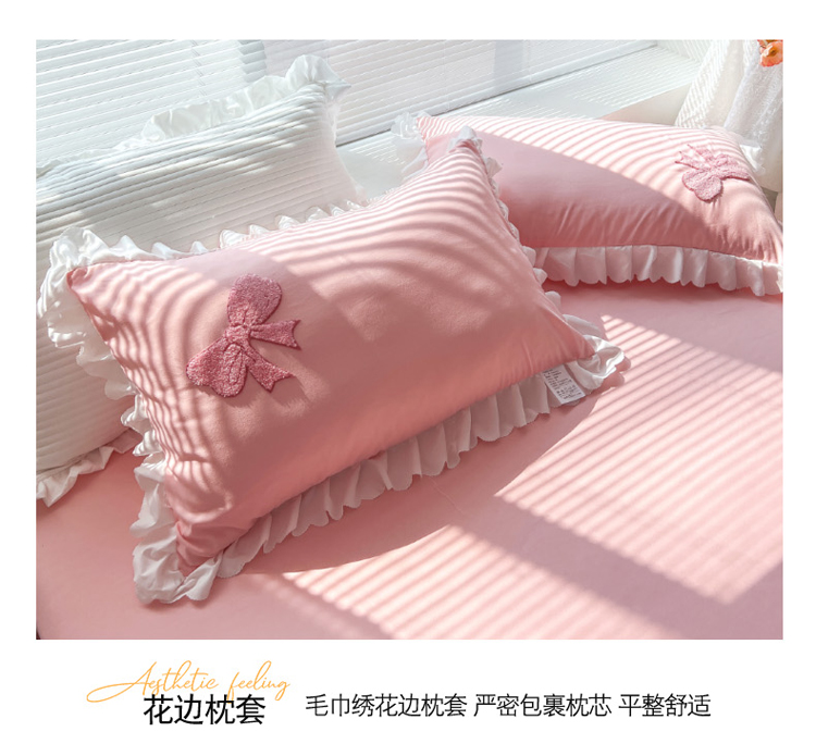 沐慕 2022新款毛巾绣洛卡棉夏被四件套 蝴蝶结-粉色