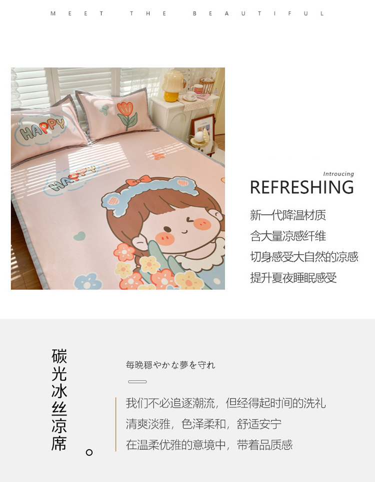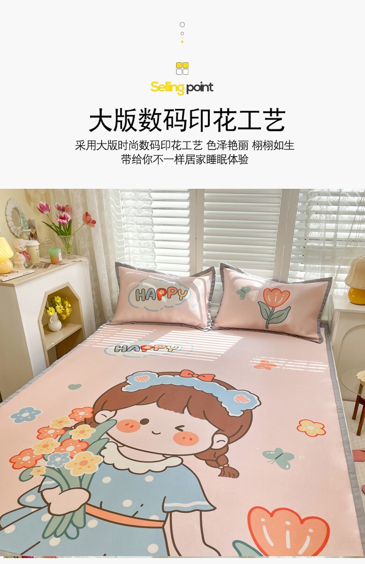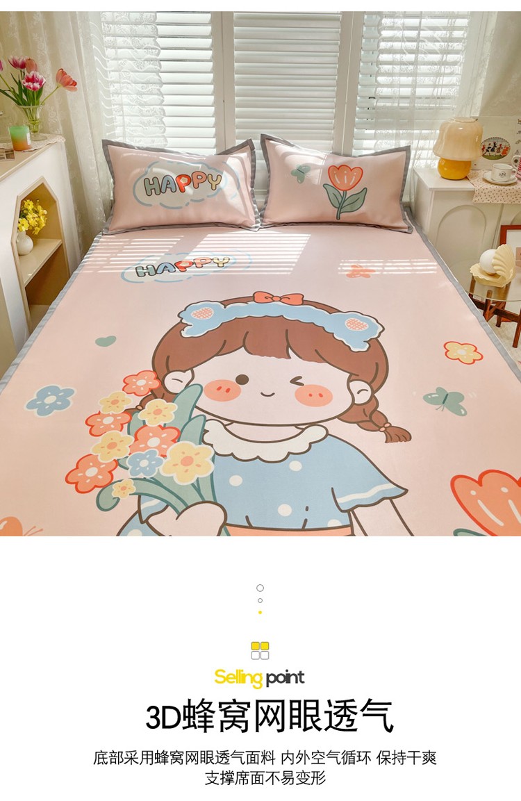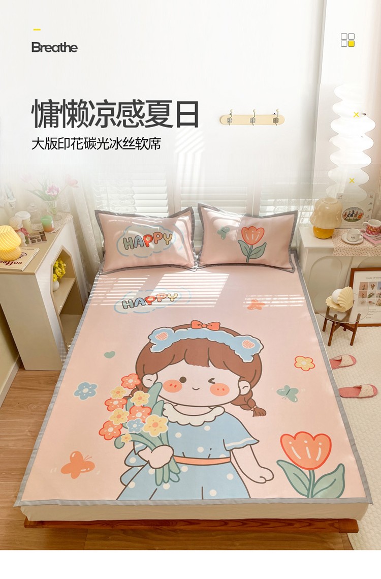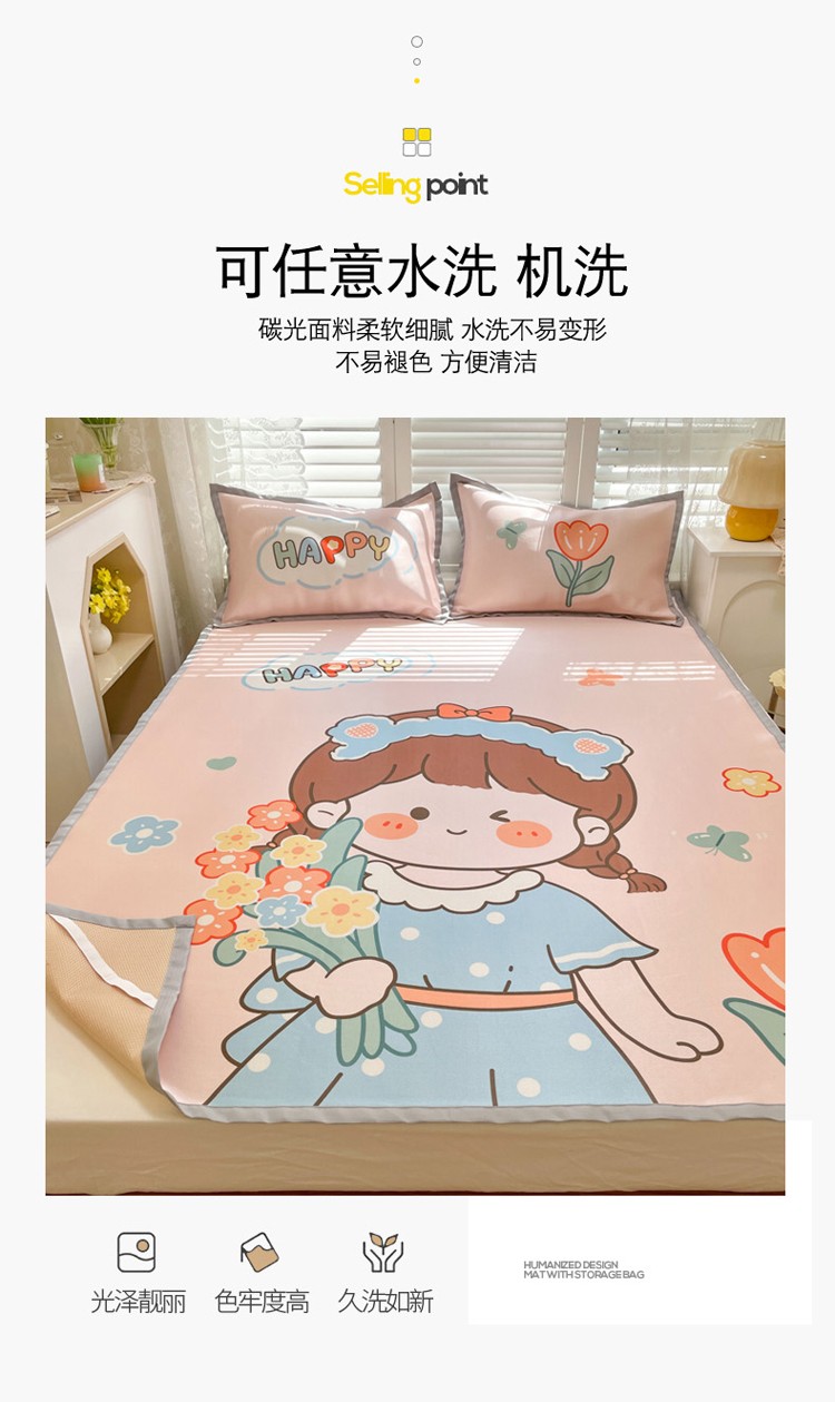 商品名称:柒月家居2022大版碳光冰丝凉席 快乐女孩