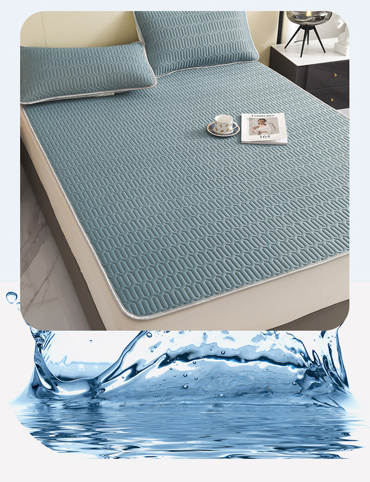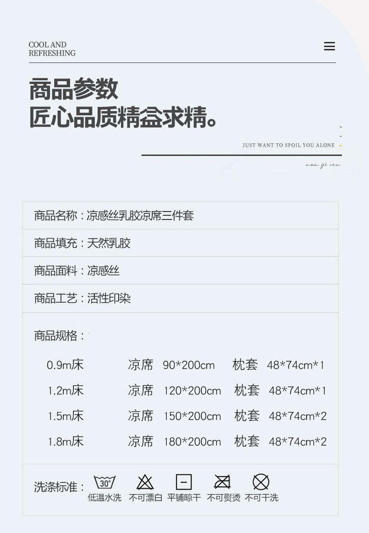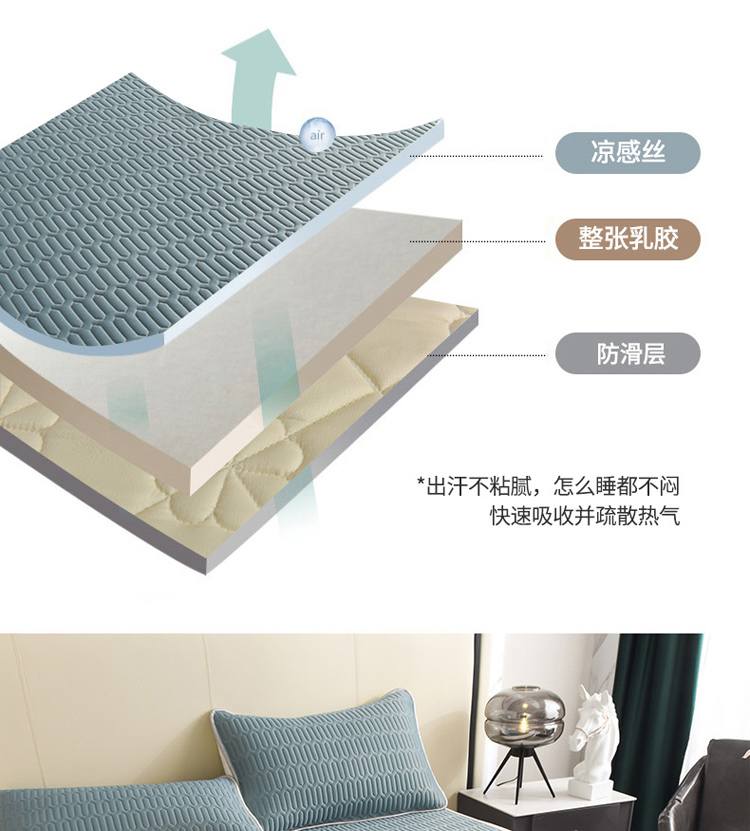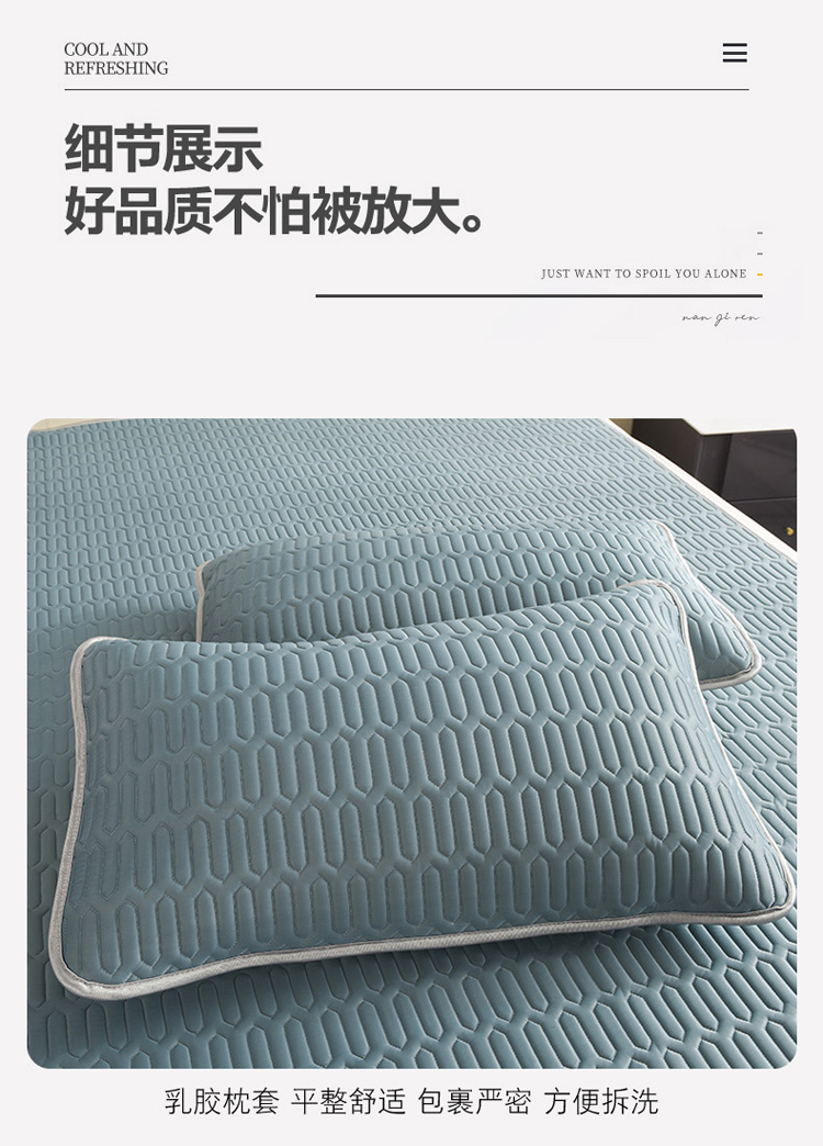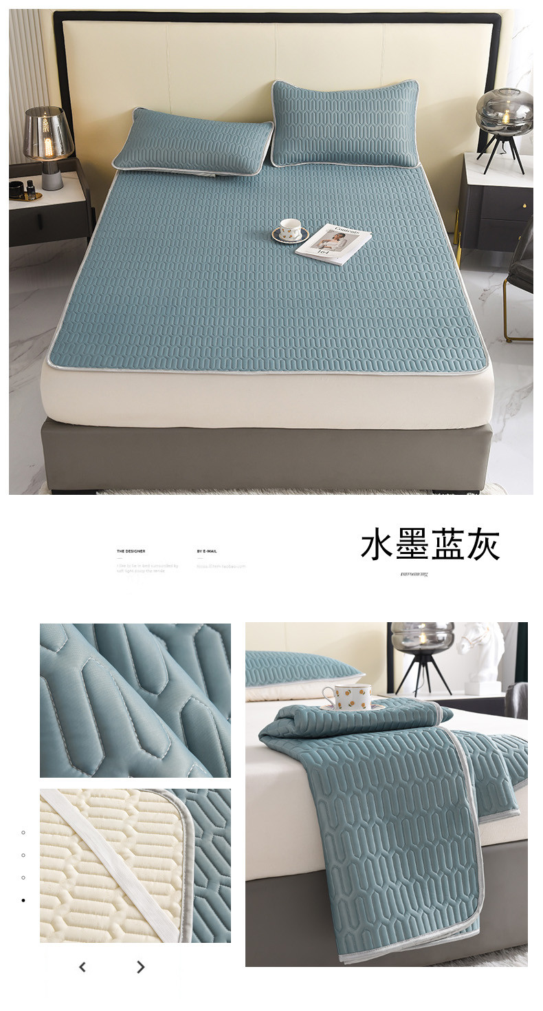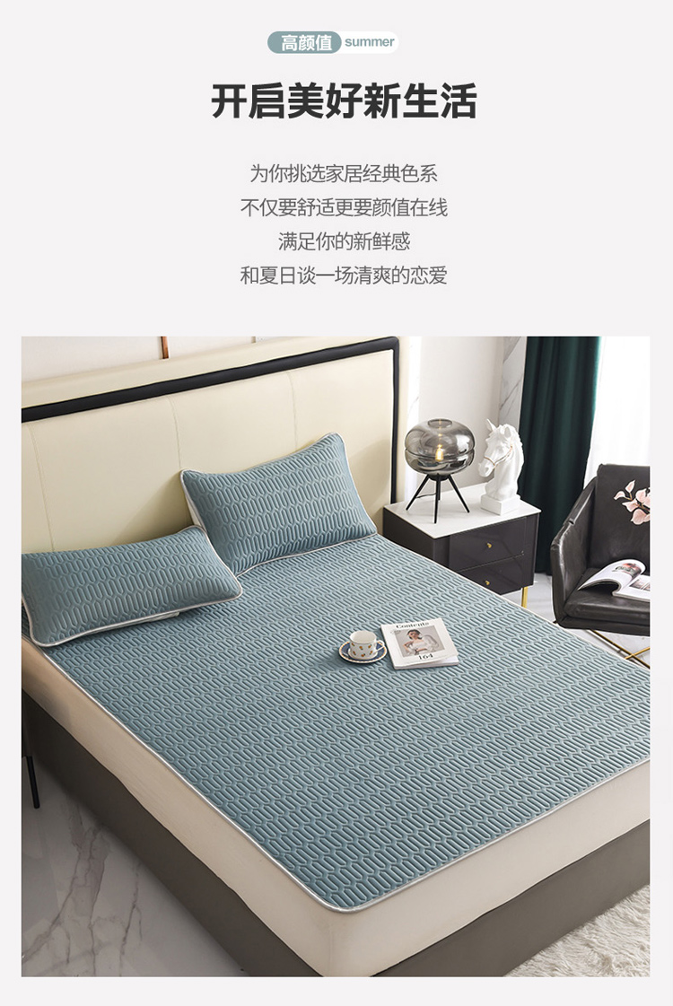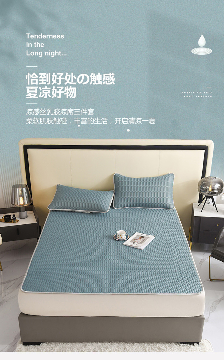 商品名称:寐居 2022新款纯色凉感丝乳胶凉席三件套 水墨蓝灰