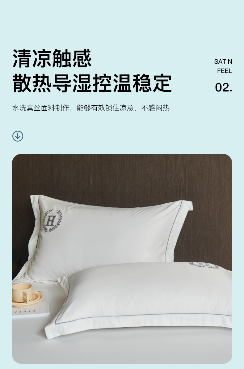 商品名称:水洗真丝枕套单人枕套刺绣加密枕芯学生宿舍家用48x74一对装 夏月-莲子白(一只)