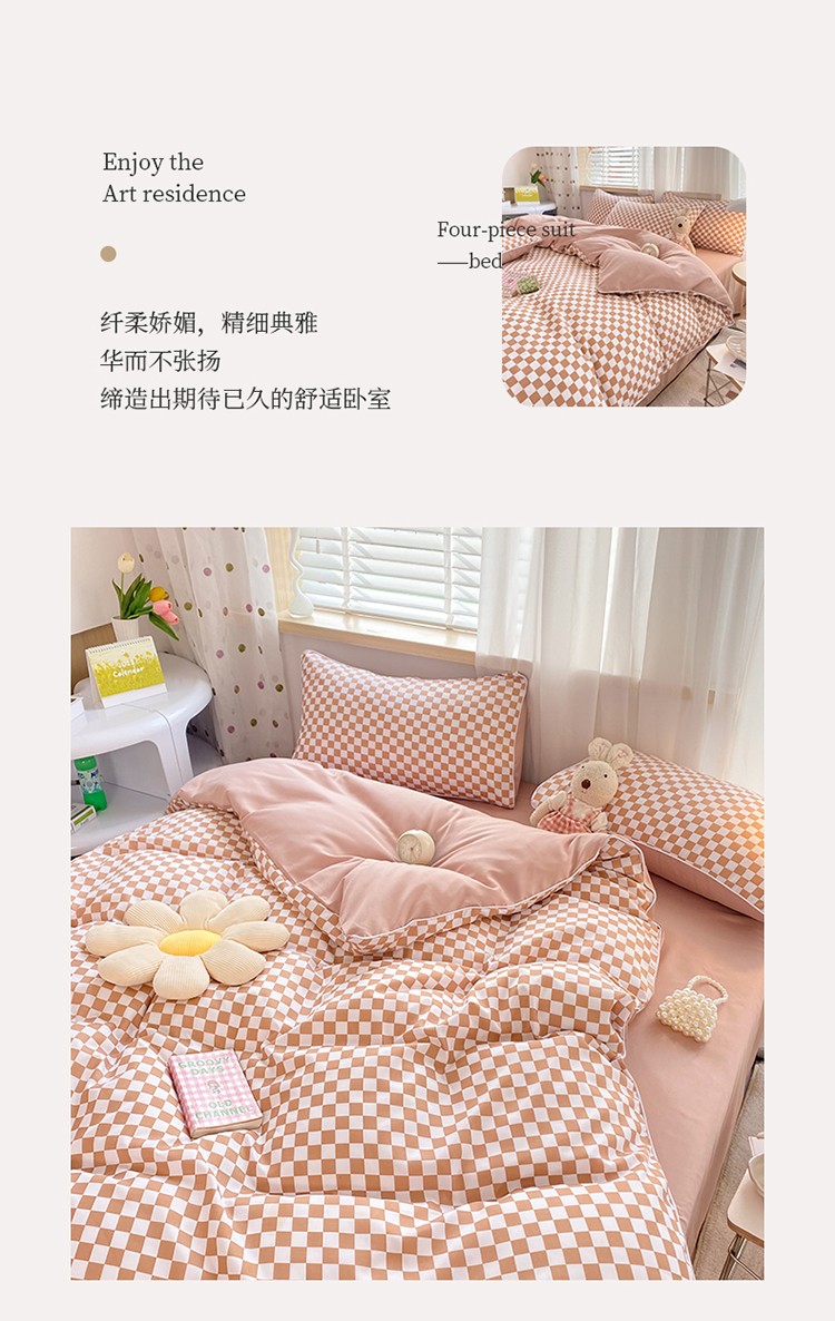 总大米家居24新款双面用磨毛水洗棉小雏菊雪纺花边海岛棉四件套,棋盘格-粉色,棋盘格-黑色,棋盘格-黄色,棋盘格-咖色,棋盘格-蓝色,棋盘格-绿色,小雏菊-菊(黄色),小雏菊-兰(蓝色),小雏菊-梅(粉色),小雏菊-竹(绿色)