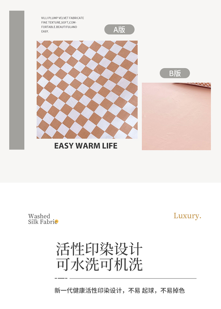 (总) 大米家居 2023高克重牛奶绒兔兔绒方格系列雕花绒兔毛四件套,方格-豆绿,方格-米白,方格-拿铁,方格-奶白粉,方格-浅蓝
