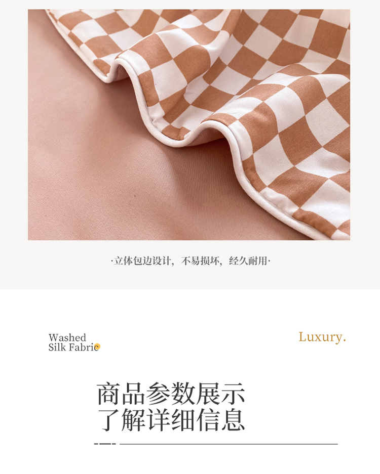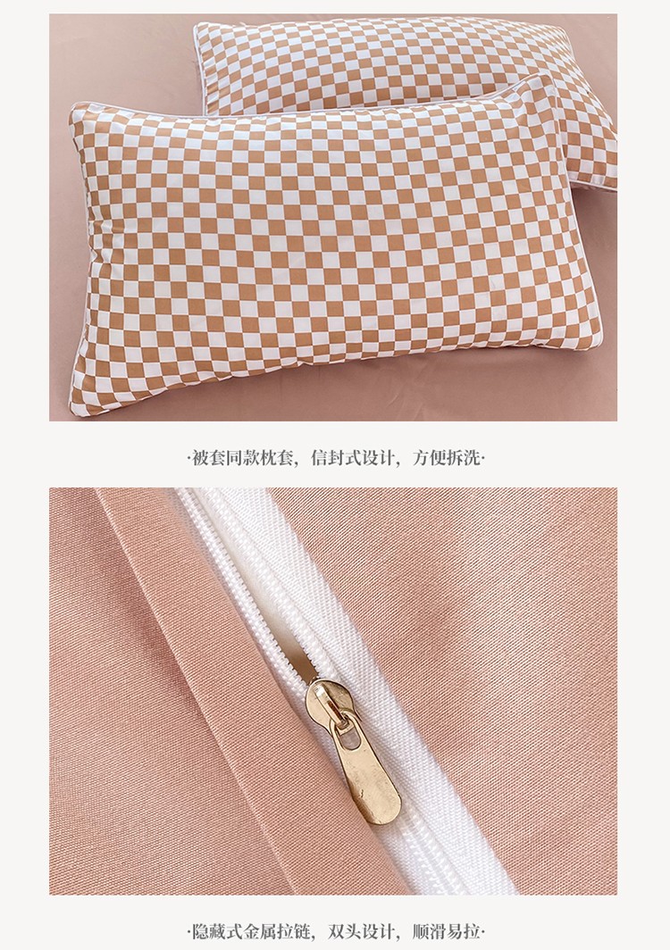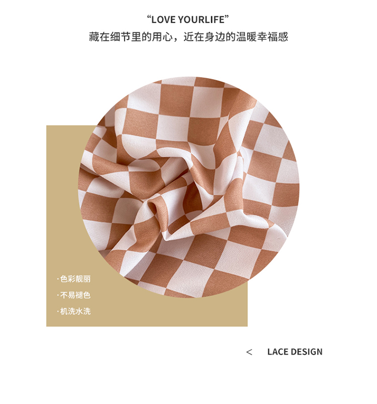 商品名称:大米家居双面用小雏菊棋盘格雪纺花边海岛棉四件套 棋盘格-咖色