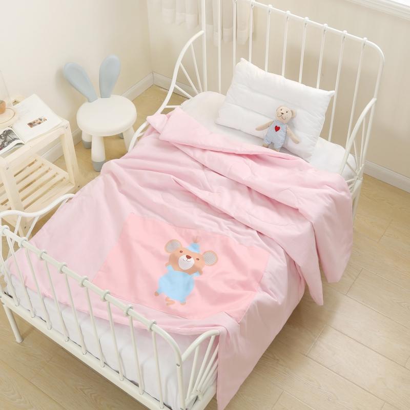 (总)喜多兔儿童家纺 2025春夏新款小软萌贴布绣纱布被,粉色软萌小兔,卡其色软萌小熊,蓝色软萌小象,绿色软萌恐龙,组合图仅供展示