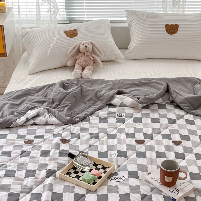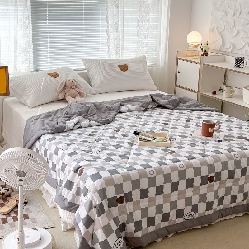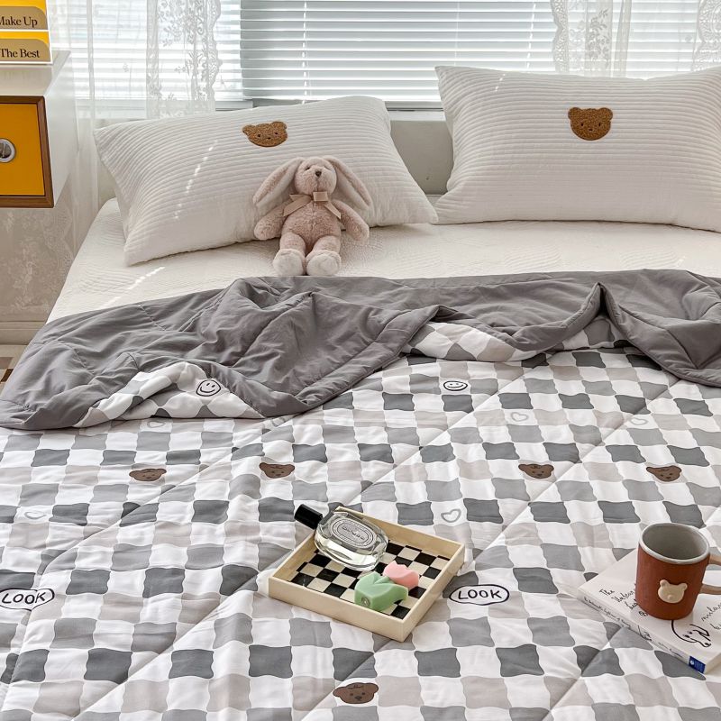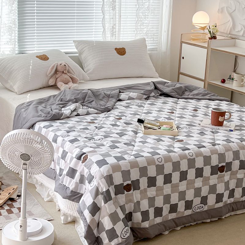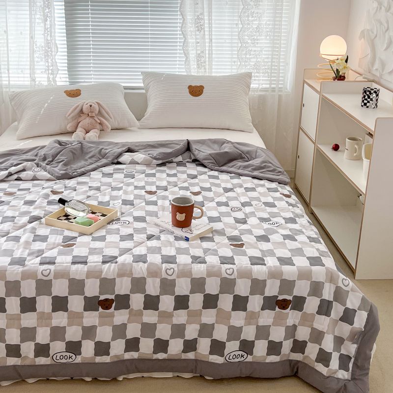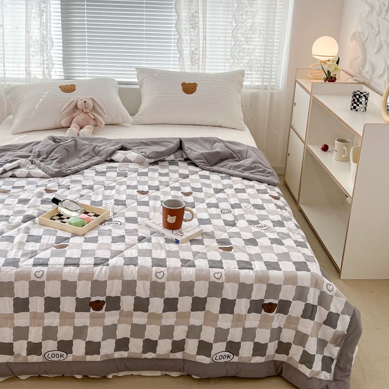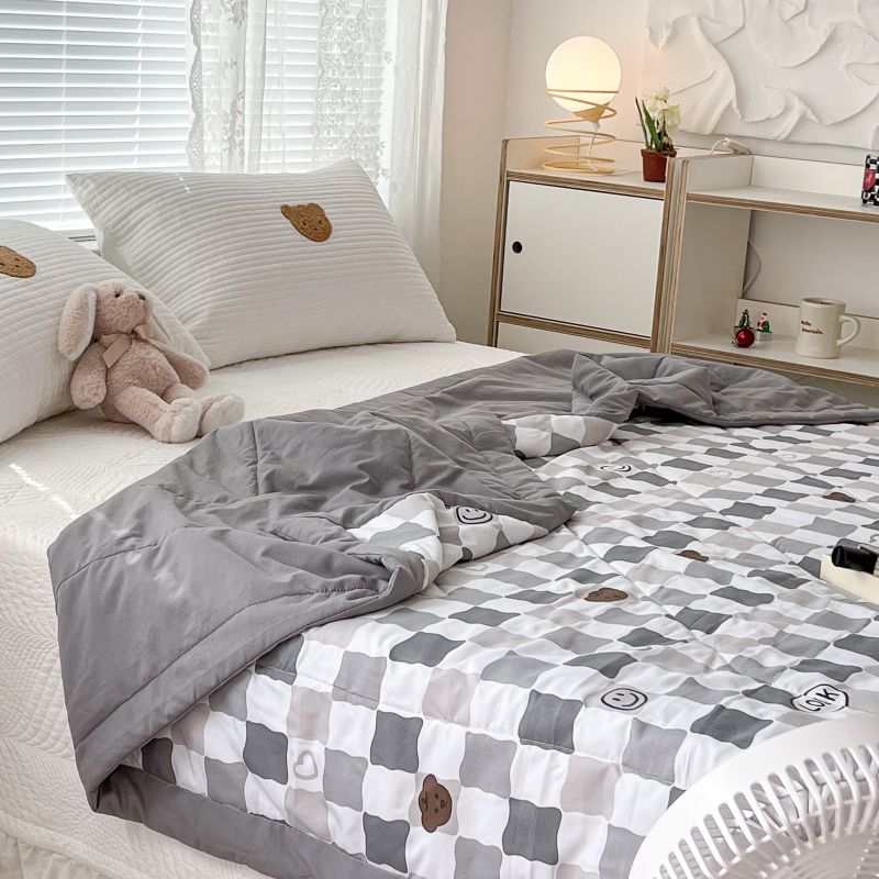 昔可 2022新款水洗亲肤夏被子被芯 灰色小格熊