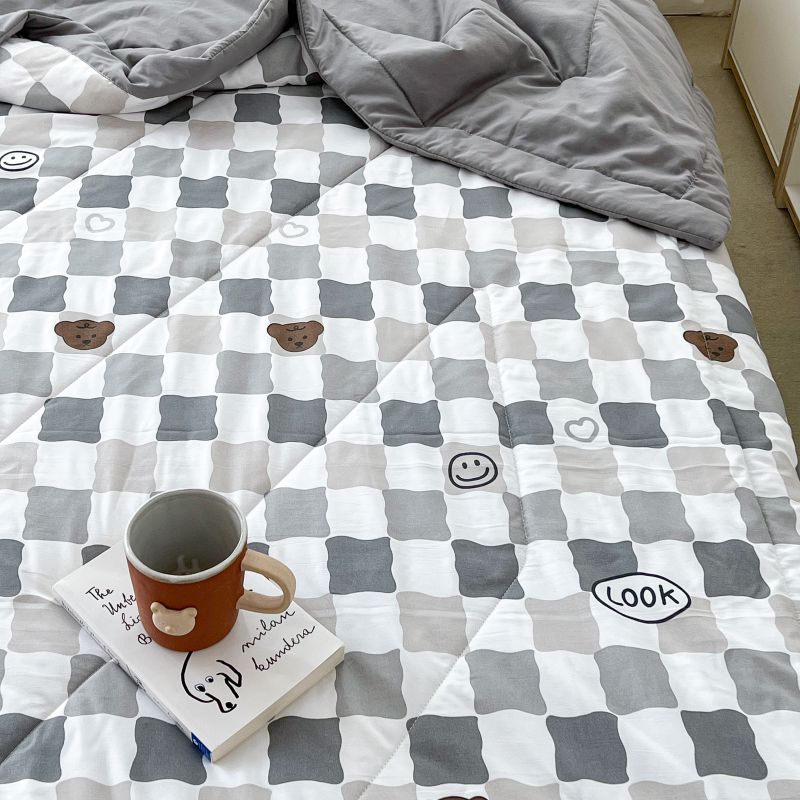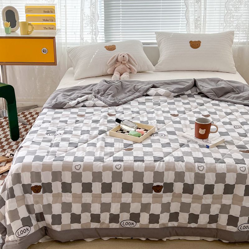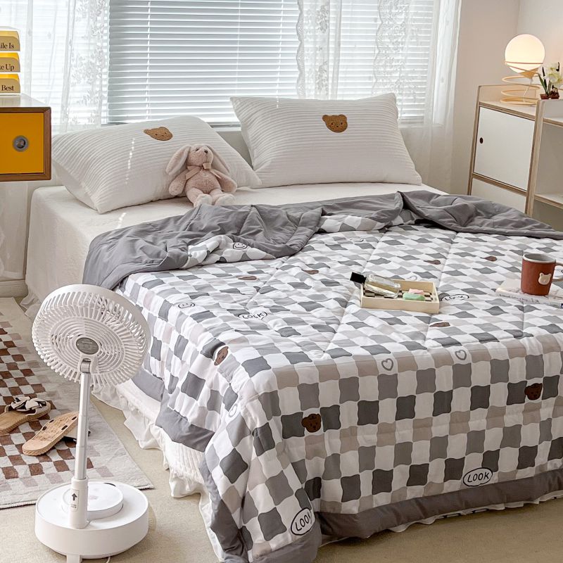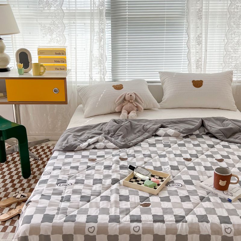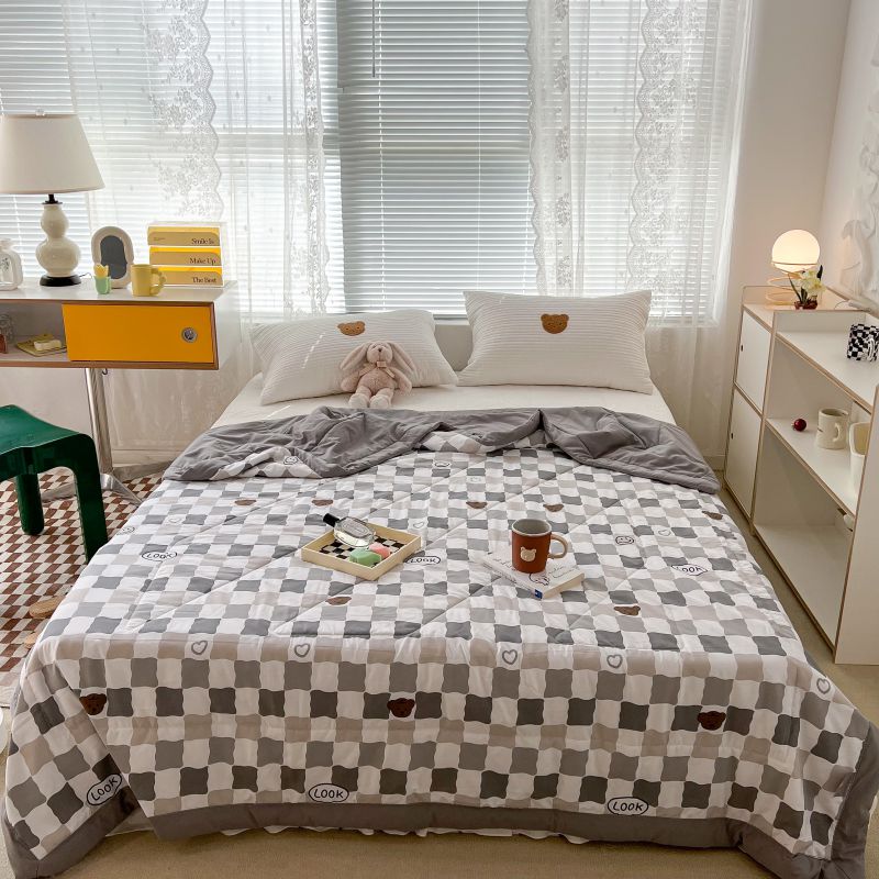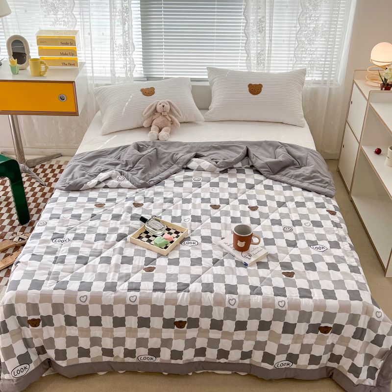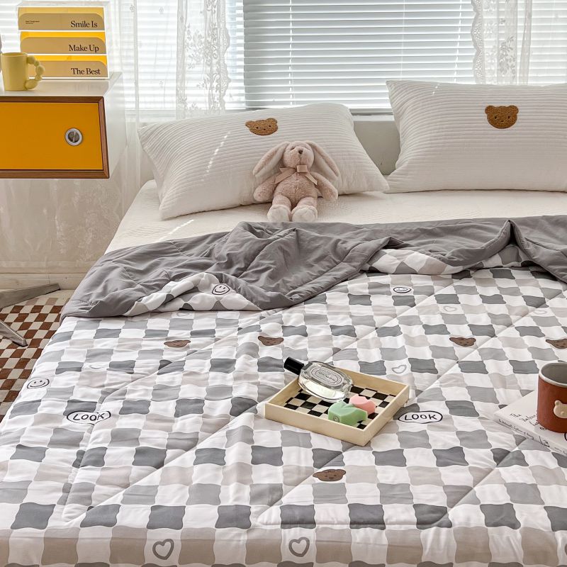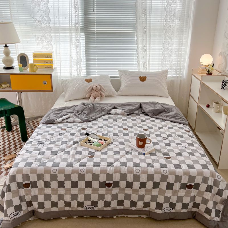 昔可 2022新款水洗亲肤夏被子被芯 灰色小格熊